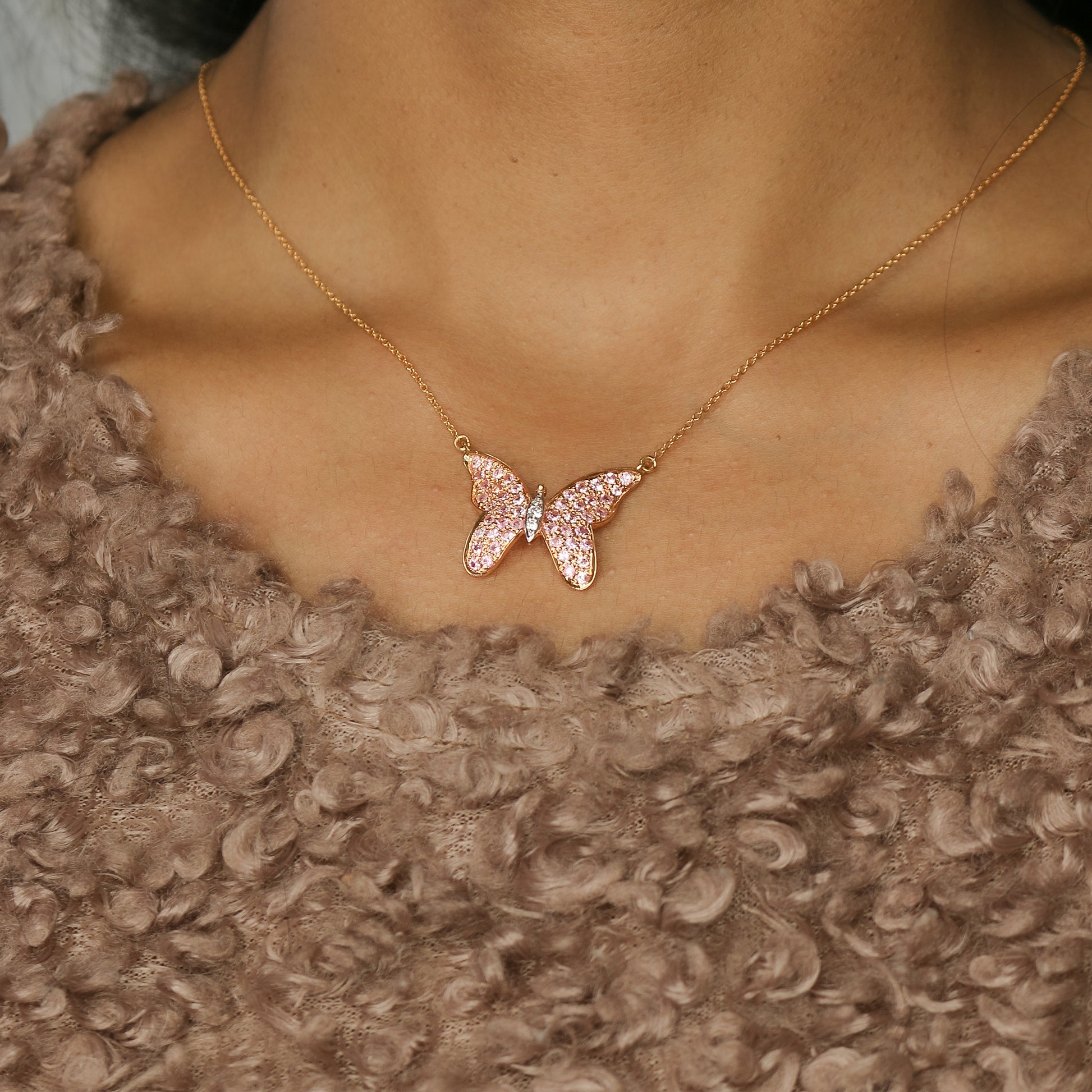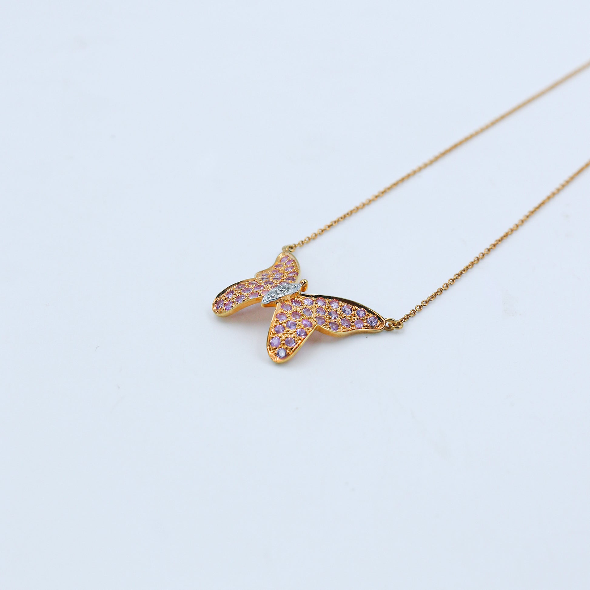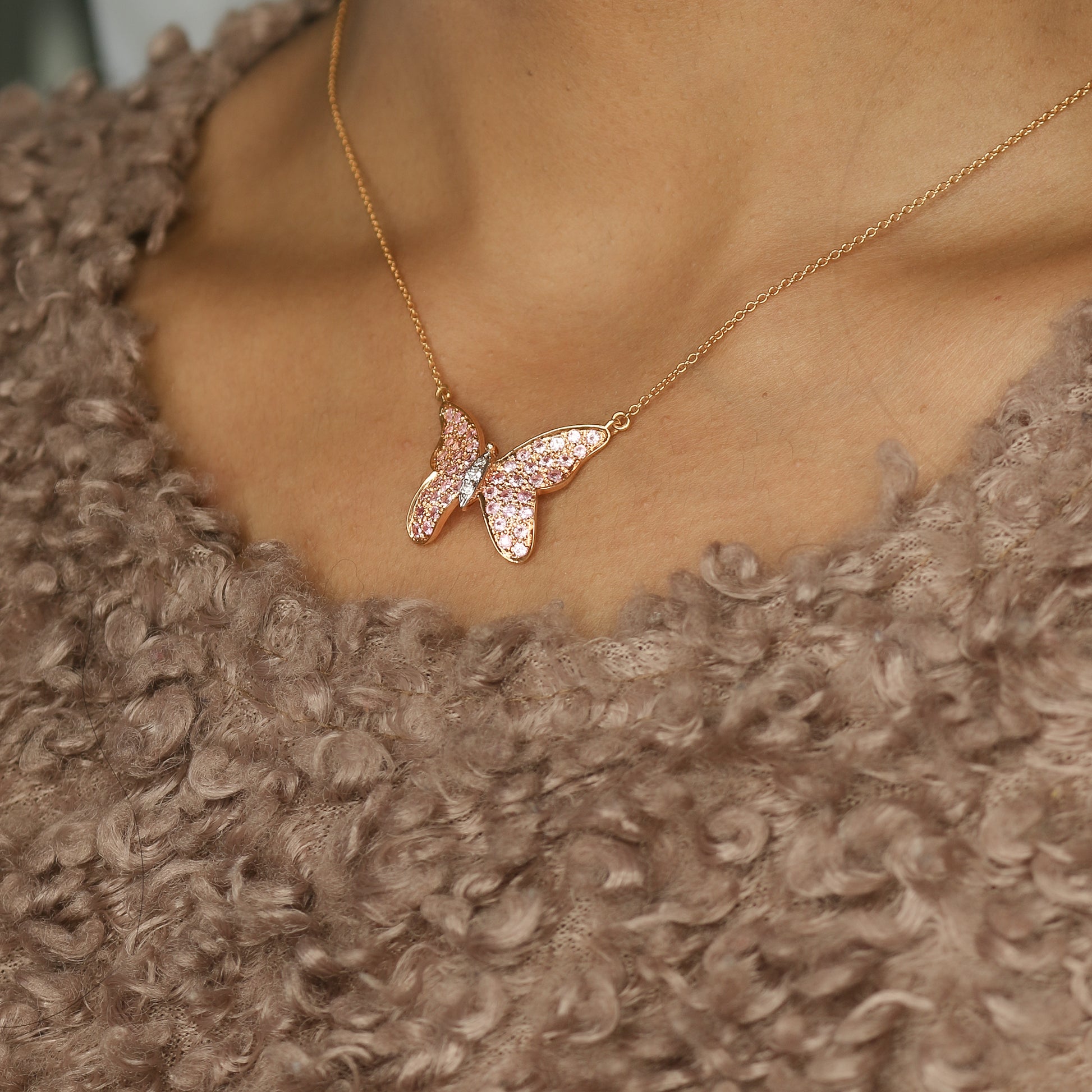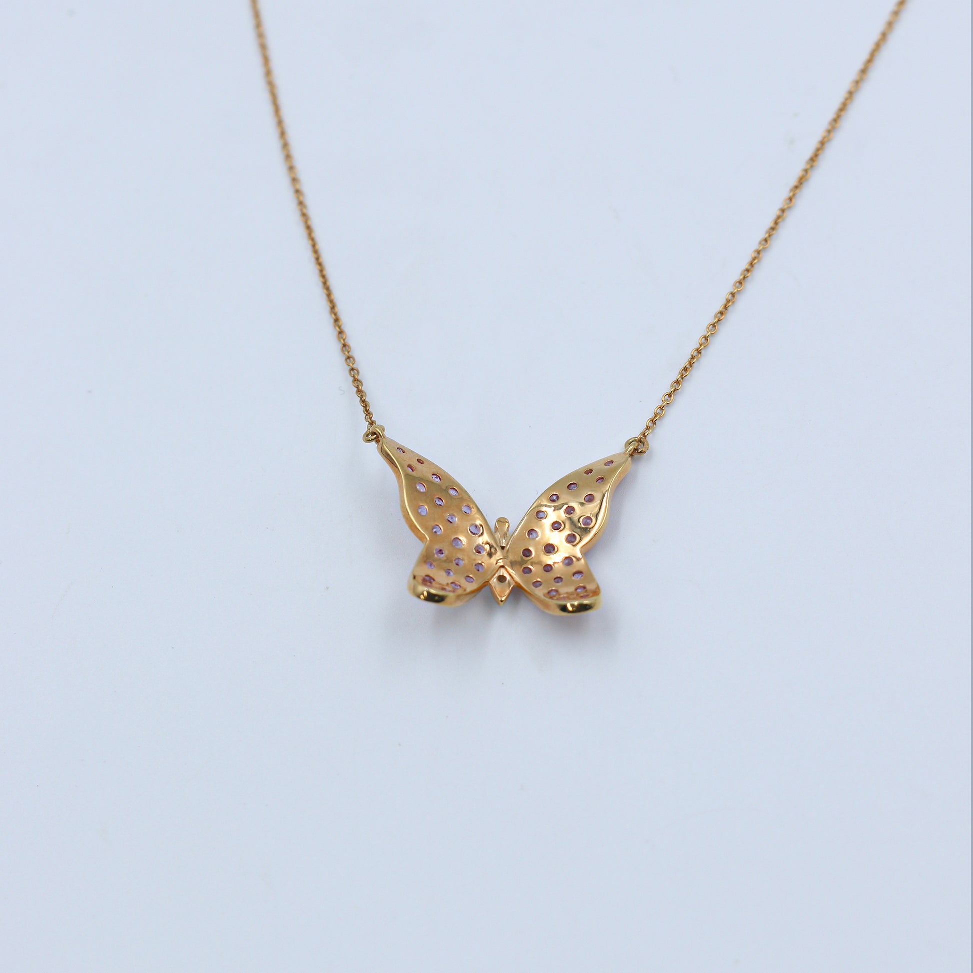 Pink Sapphire & Diamond Butterfly Pendant in Gold