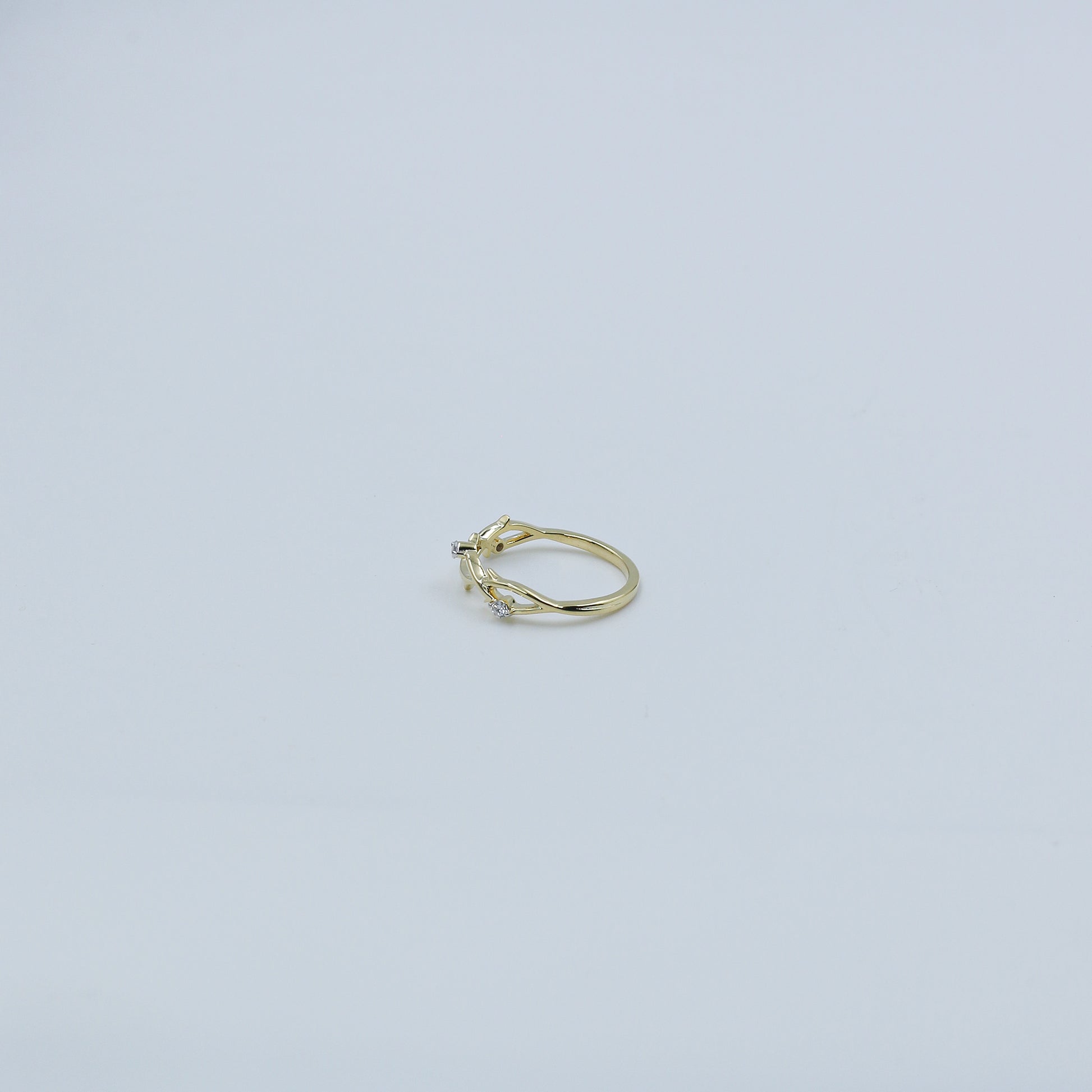 Introducing the fashionable Yellow Gold Chevron Diamond Stackable Ring - AJ6117I. This piece features a perfectly curved V-shape that is ideal for nesting with other rings or wearing alone for a subtle, contemporary statement. The center of the chevron is highlighted by three small, sparkling diamonds, which total 0.09 Ct.