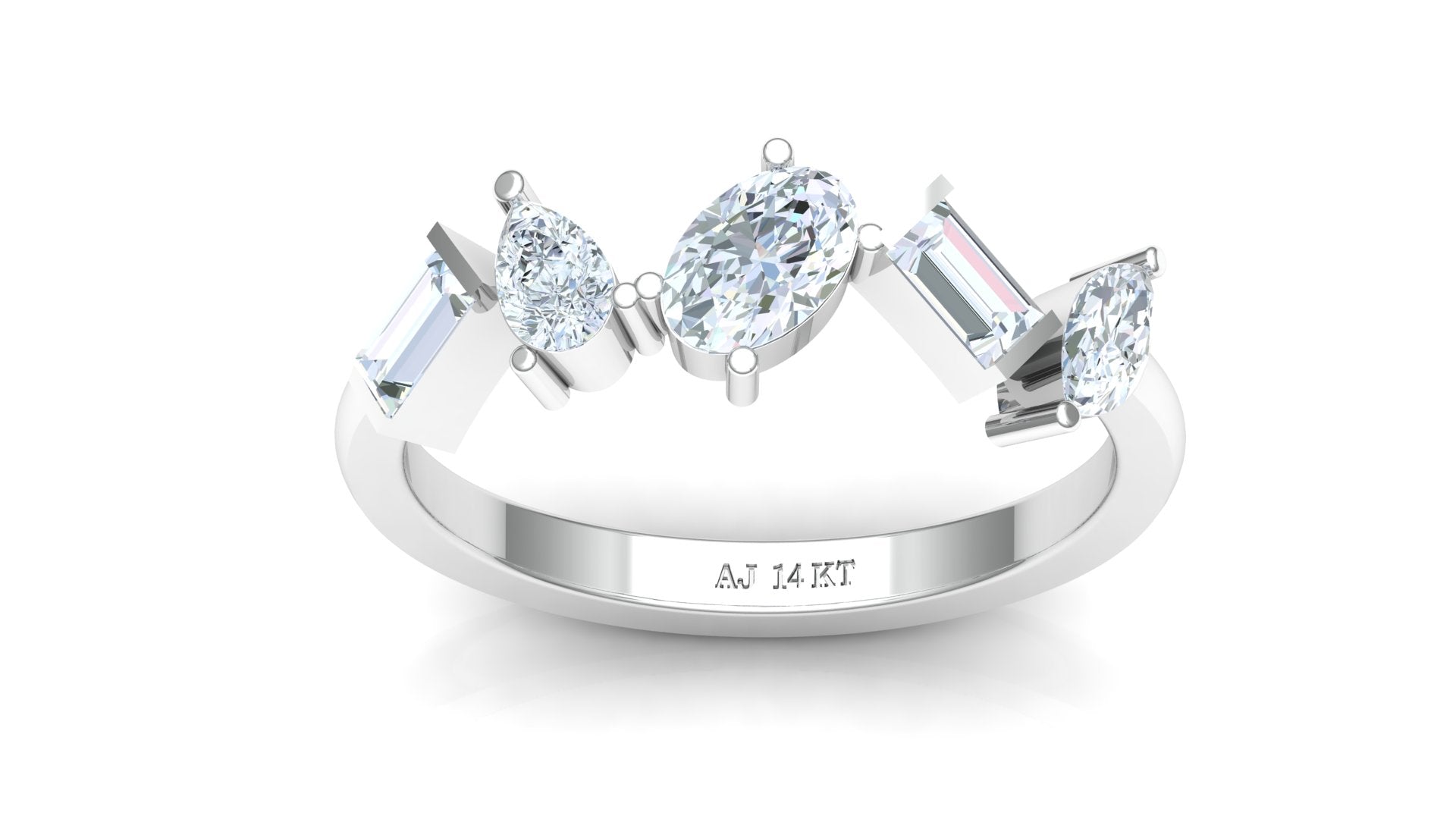 The piece contains 5 diamonds for an impressive total diamond weight of 1.050 Ct. With a gross weight of 3.1 grams and sized US-7, the ST-2361 is a perfect choice for a stunning wedding band, anniversary gift, or a remarkable everyday diamond ring.