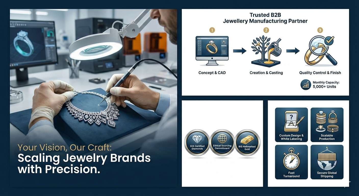 Anirudh Jewels is a second-generation jewellery manufacturer and exporter from Jaipur, specializing in lightweight 14K & 18K gold and diamond jewellery for global B2B buyers