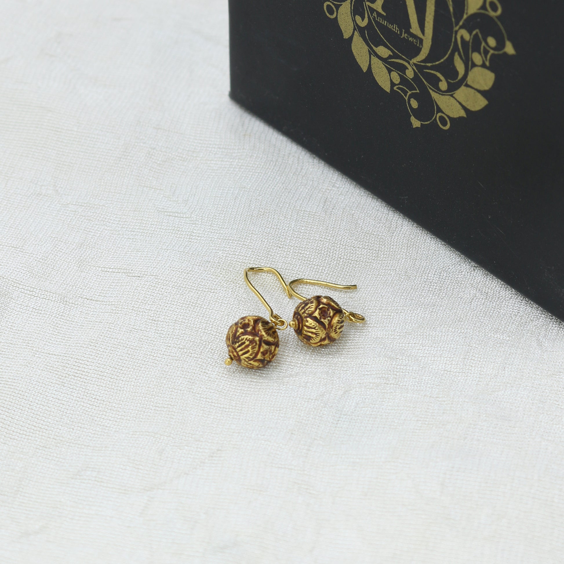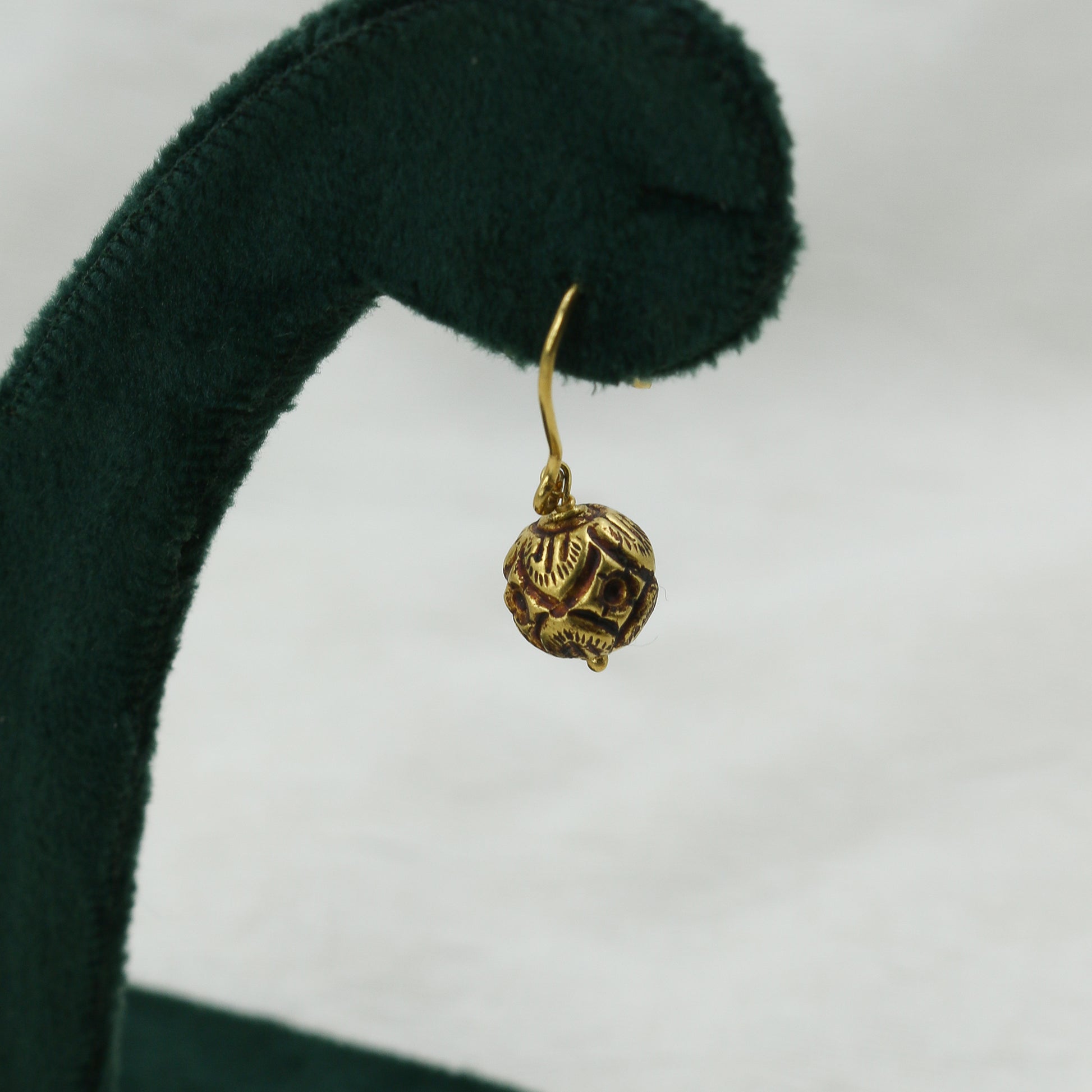 Antiqued Yellow Gold Spherical Drop Earrings