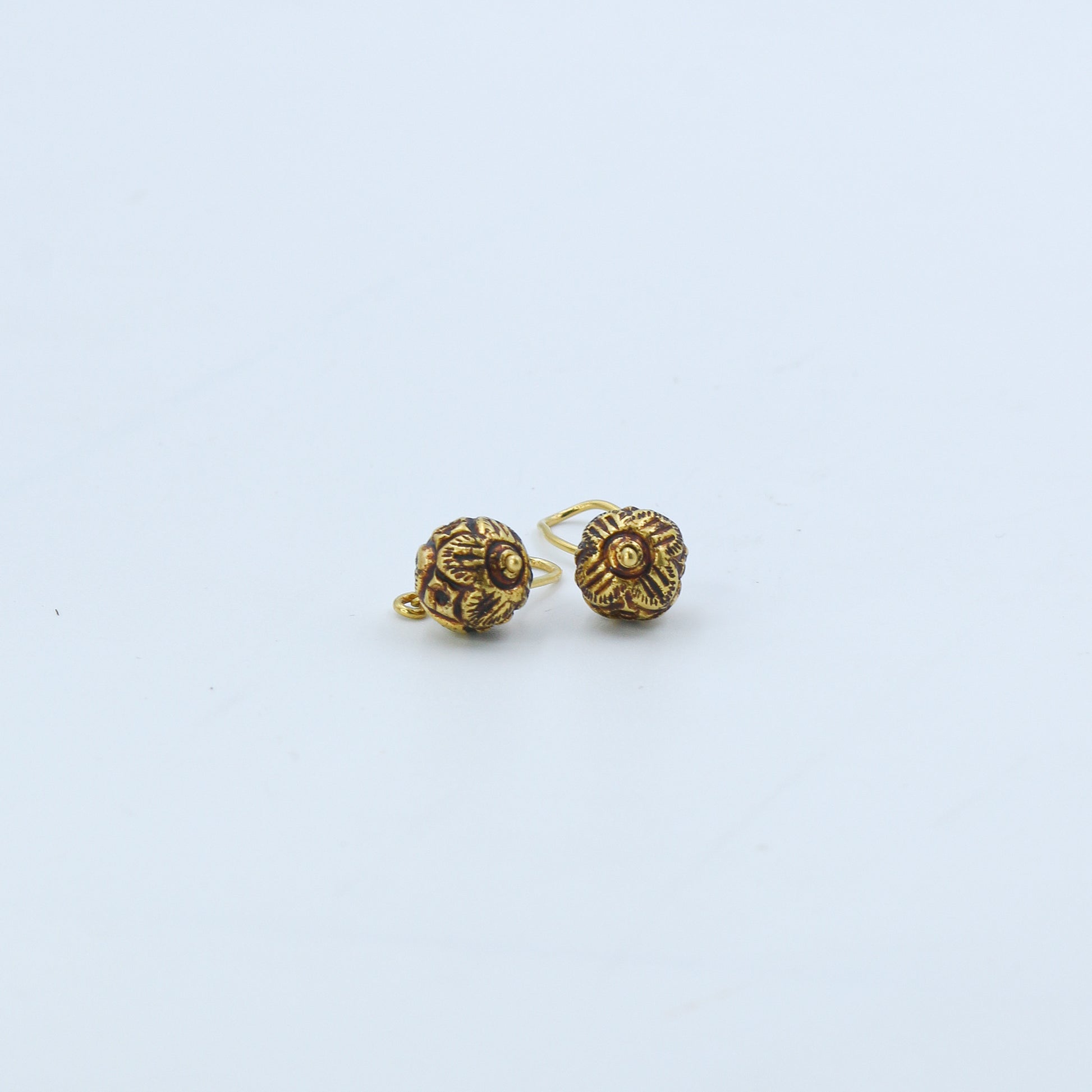 Embrace a touch of artisan elegance with the Antiqued Yellow Gold Spherical Drop Earrings - AJ61237. These distinctive earrings feature a perfectly rounded spherical drop, adorned with deep, intricate textures and an antiqued finish that highlights the craftsmanship of the design.