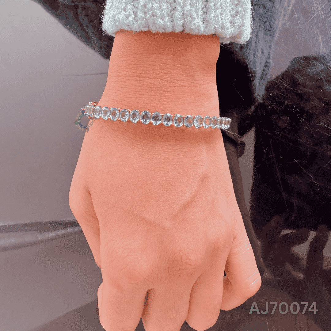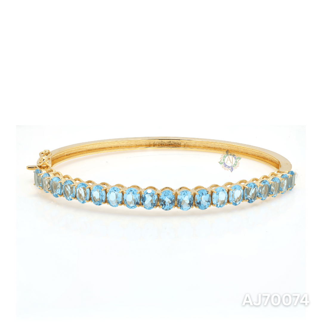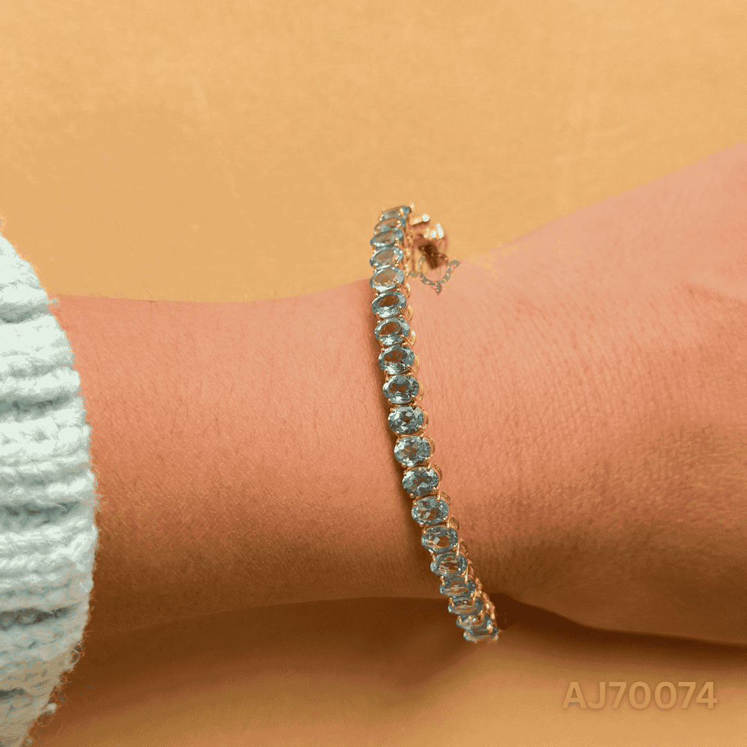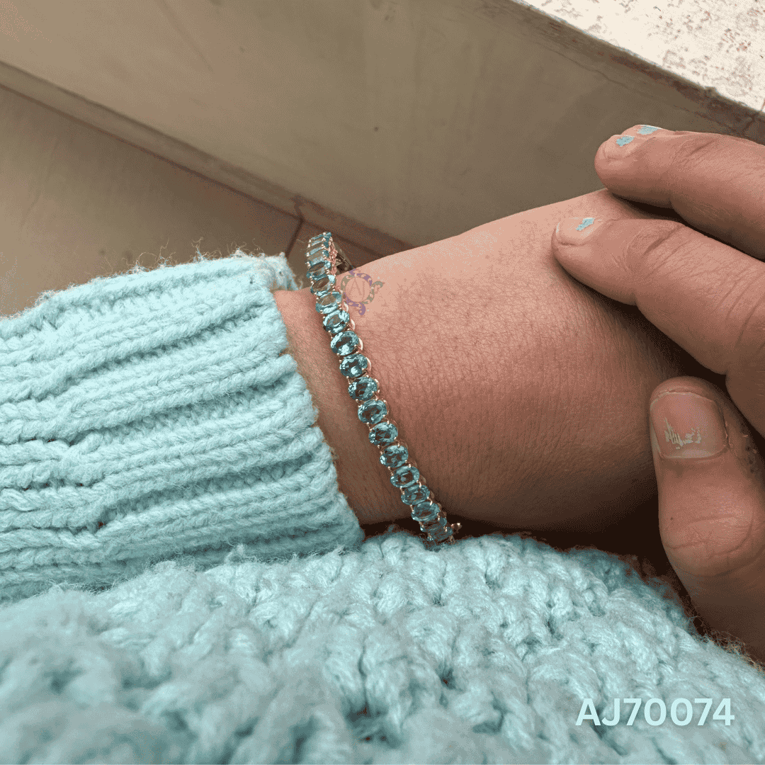 Elevate your elegance with the Blue Sapphire Glow Bracelet by Anirudh Jewels. Featuring a radiant row of oval-cut blue sapphires, each stone is expertly set in a warm-toned frame that enhances its deep, royal hue. The classic yet eye-catching design wraps gracefully around the wrist, making it ideal for both everyday luxury and special occasions. Handcrafted with precision and fully customizable to your preference.