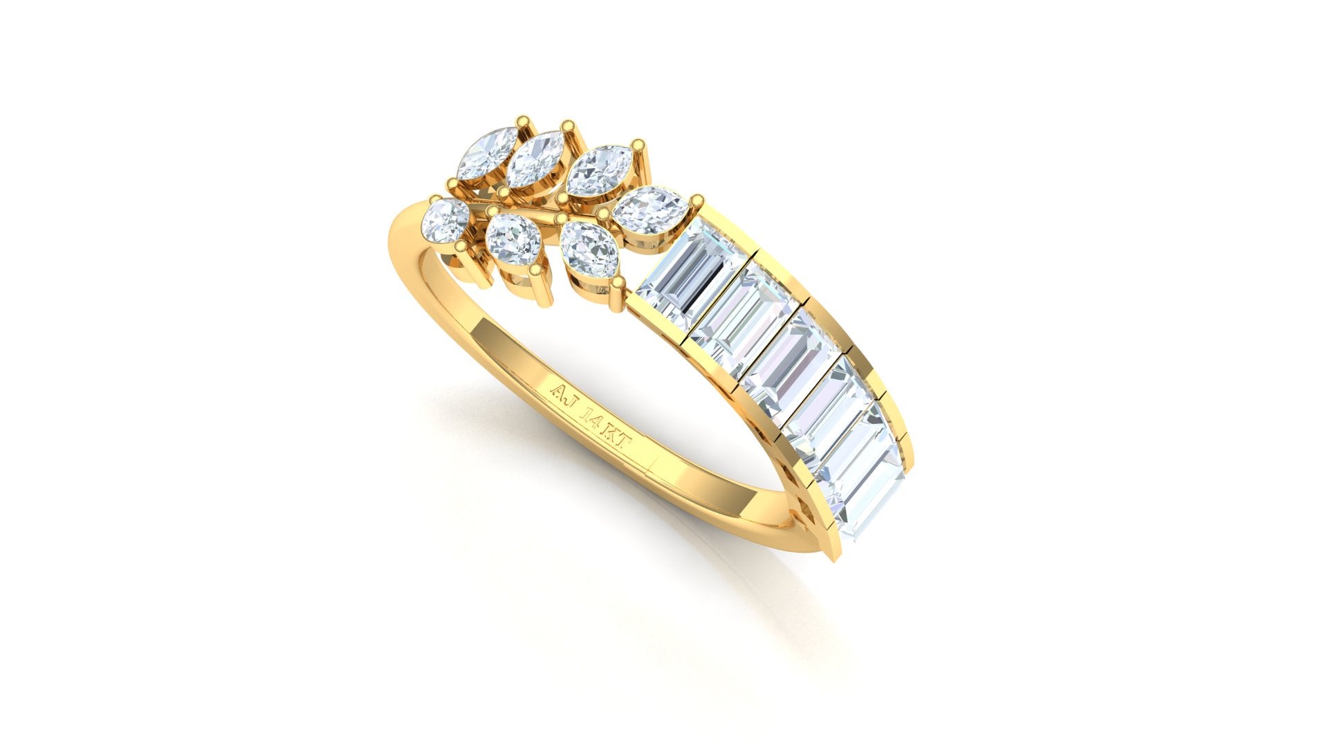 Introducing the magnificent and high-carat Bar-Set Wide Eternity Band CVD Diamond Ring - ST-2199. This exceptional piece features a bold, wide silhouette showcasing large, rectangular-cut diamonds set horizontally across the band. The ring is adorned with twenty-six individual CVD diamonds, achieving an extraordinary total weight of 3.43 Ct.