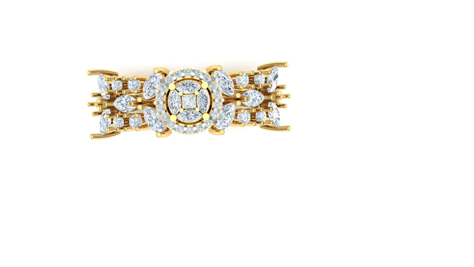 Introducing the beautiful and classic Central Oval Cluster Five-Stone CVD Diamond Ring - ST-2442 (A). This ring presents a prominent, oval-shaped central diamond cluster with a surrounding halo, flanked by two stepped side clusters on each shoulder, totaling five major focal points. The entire piece is set with forty-three individual CVD diamonds, accumulating a strong total weight of 0.82 Ct.