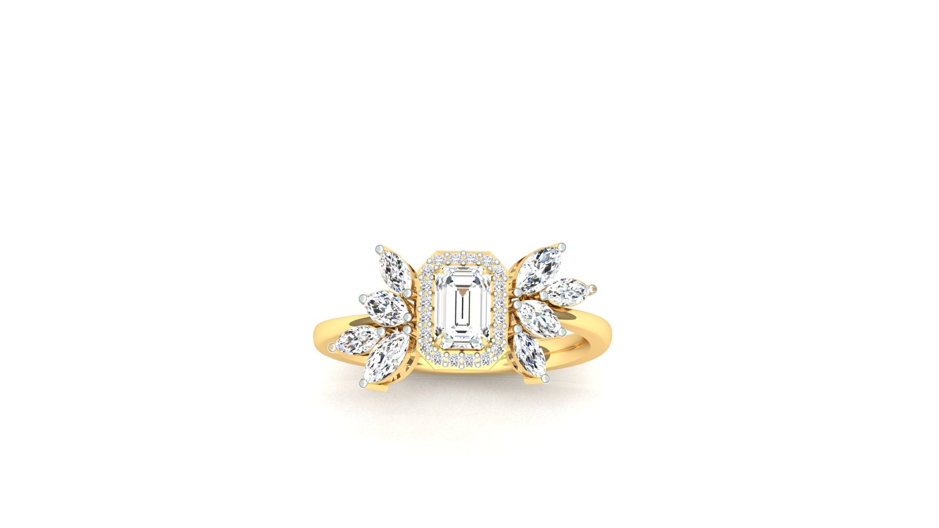 Introducing our beautifully crafted CVD Diamond Marquise Side Halo Ring – ST-2086, a breathtaking piece that brings together refinement, artistry, and radiant brilliance. Designed with a unique center square halo and elegant marquise-shaped accents on each side, this ring stands out with its luxurious symmetry and distinctive silhouette. The combination of baguette-style detailing and round diamonds creates a captivating sparkle, making this ring a true showpiece for any jewelry lover.