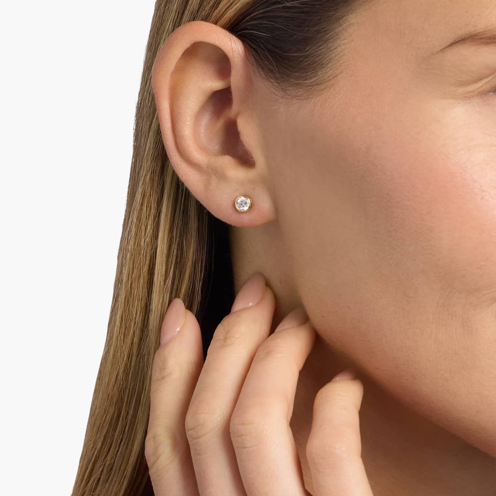 The diamonds are high-quality CVD (Chemical Vapor Deposition) with EF color and VVS1 clarity, guaranteeing exceptional sparkle. With a comfortable gross weight of 2 grams, the AJ-ER-34 studs offer a blend of classic shape and modern design, perfect for any occasion.