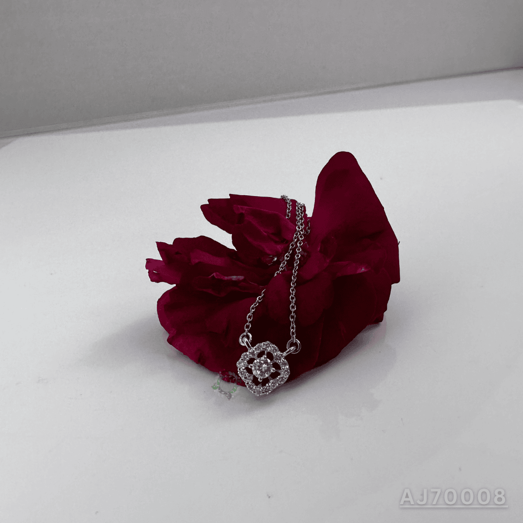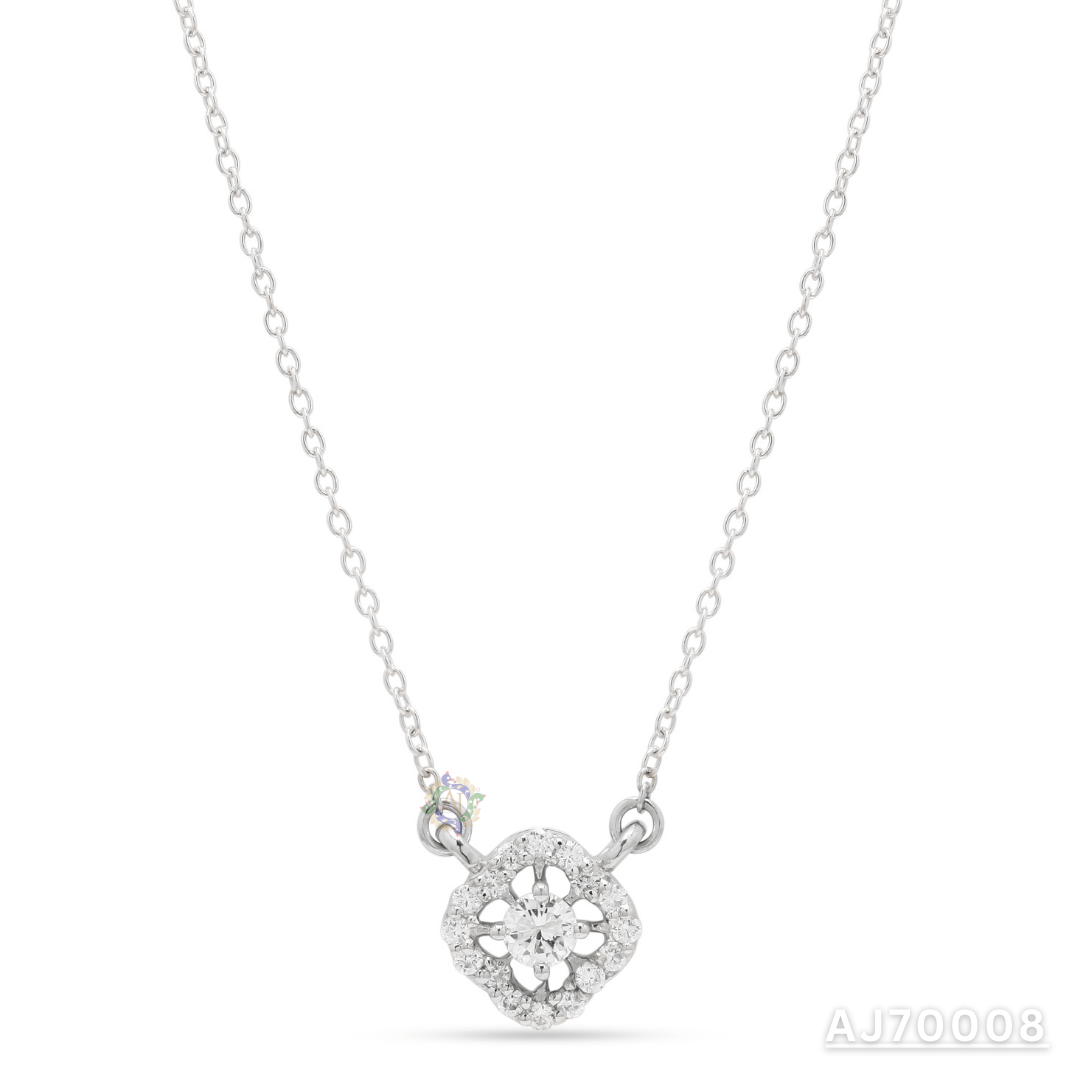 Add a touch of refined sparkle with the Floral Diamond Halo Pendant By Anirudh Jewels. Designed in a graceful floral motif, this piece showcases a brilliant central diamond encircled by a delicate halo of hand-set stones. The openwork detailing gives the pendant a light, airy feel, while the balanced symmetry makes it effortlessly elegant. Perfect for everyday luxury or meaningful gifting, this design is handcrafted and fully customizable to suit your personal style.