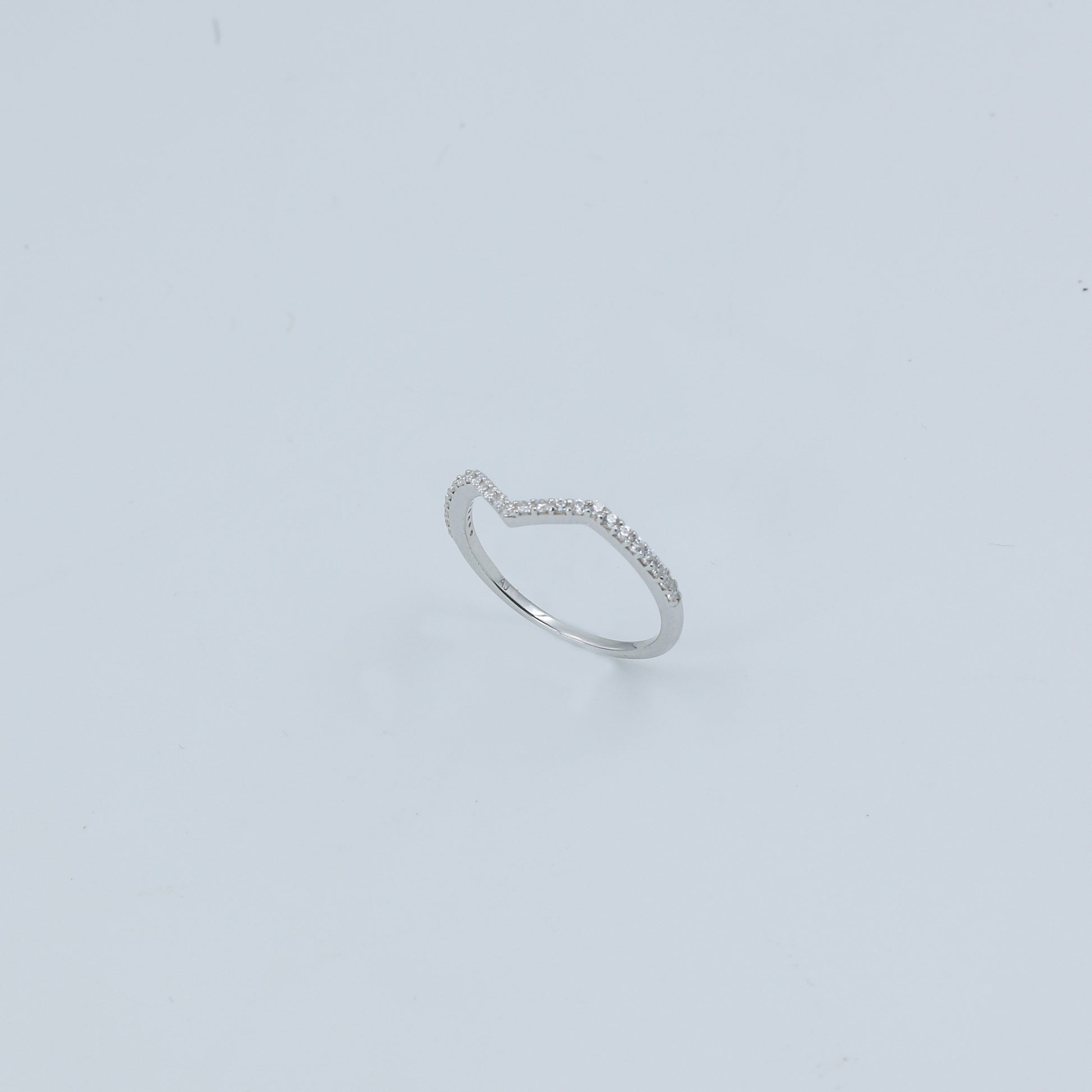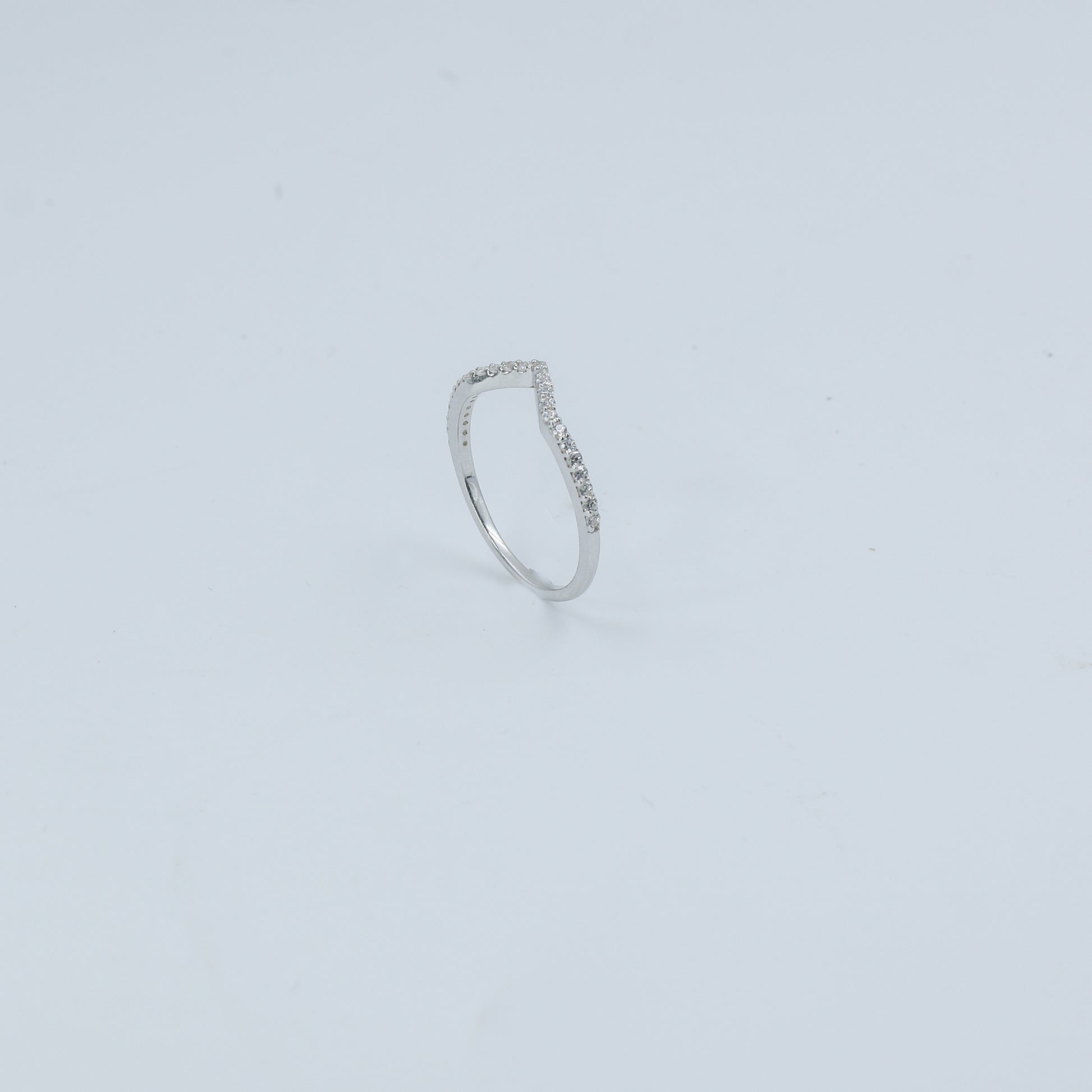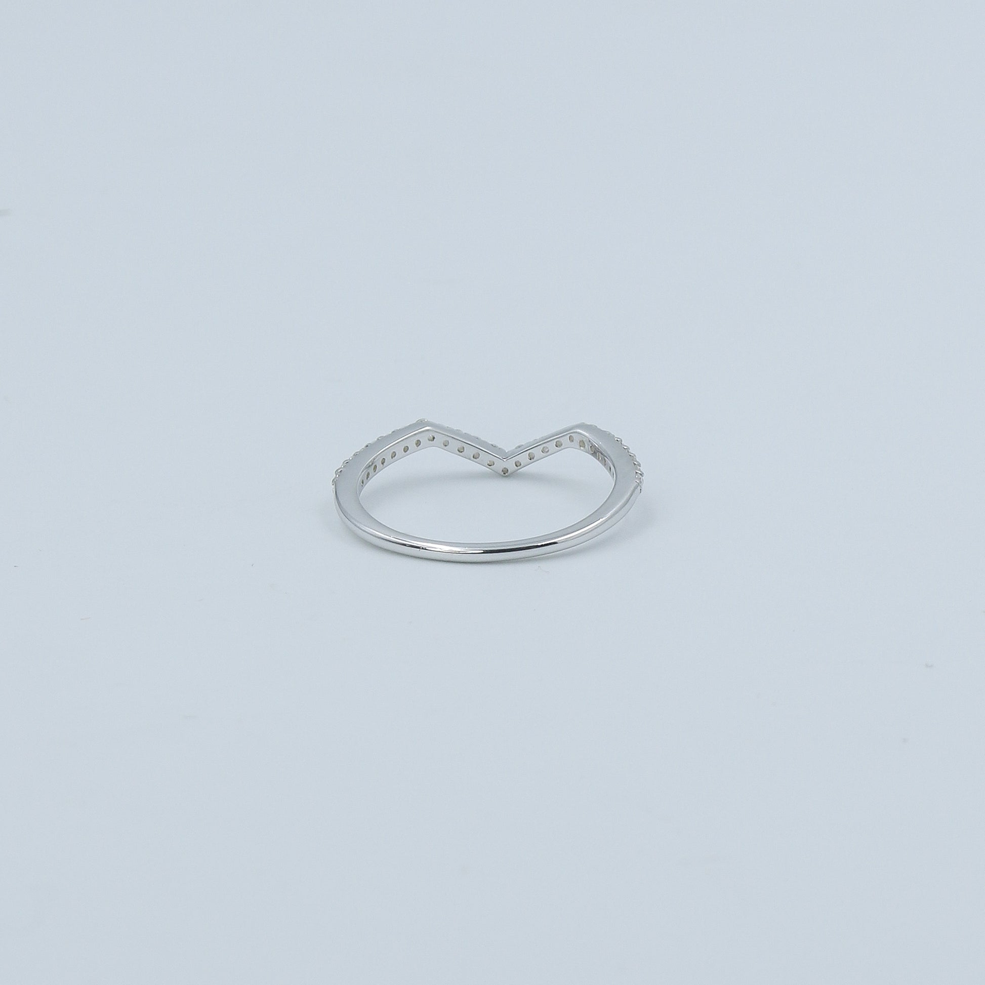 Define modern minimalism with the Diamond Chevron V-Band Ring - AJ12032. This elegant "ring" features a classic wishbone or V-shaped silhouette, designed to offer a flattering, elongated look on the finger. The slender band is meticulously pavé-set with a continuous row of shimmering diamonds that meet at a graceful central point, creating a sharp yet feminine aesthetic.
