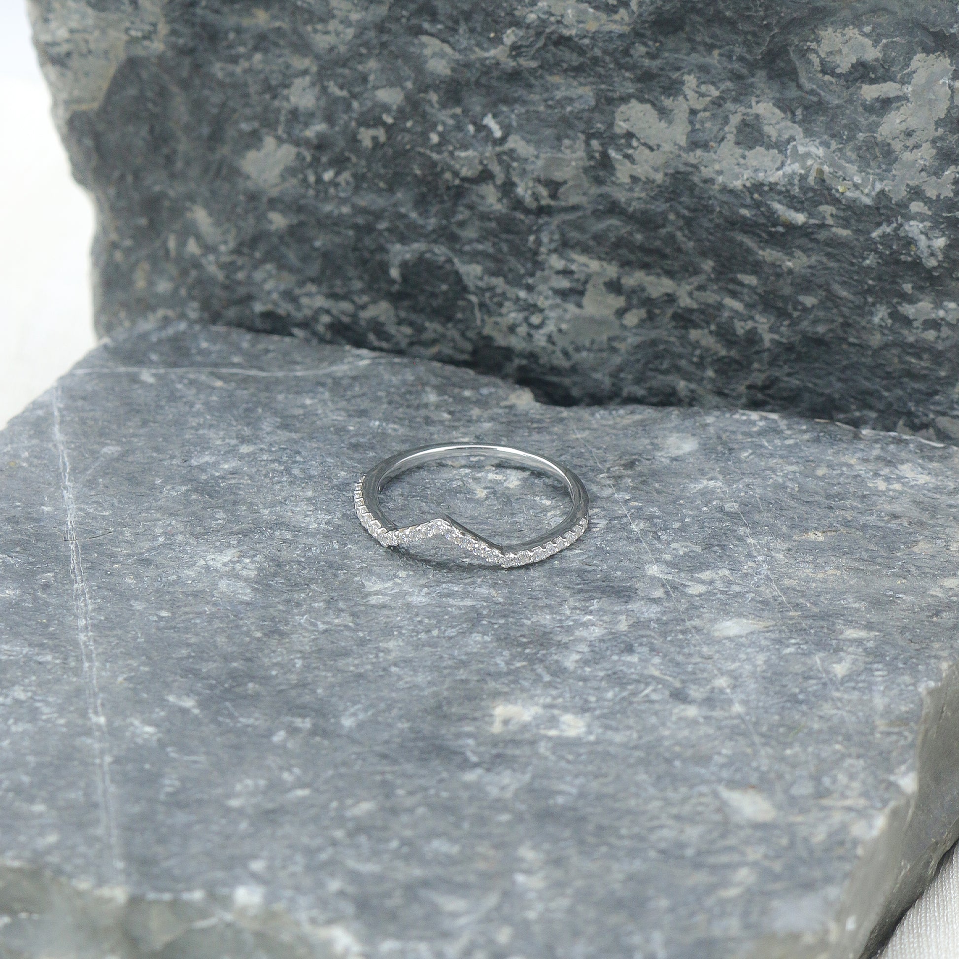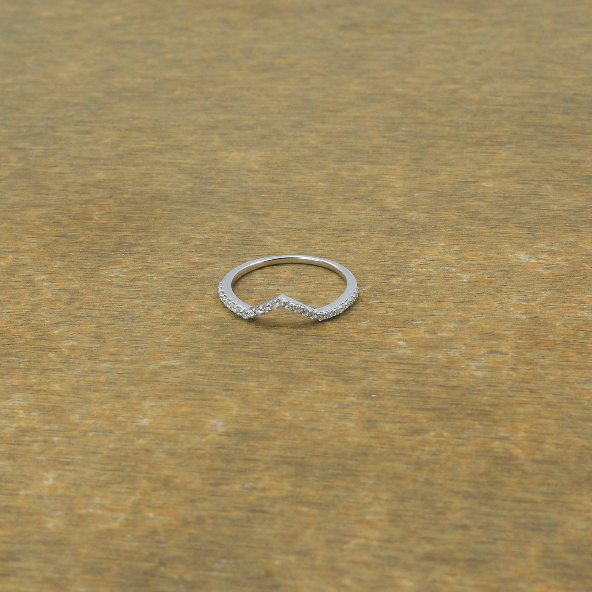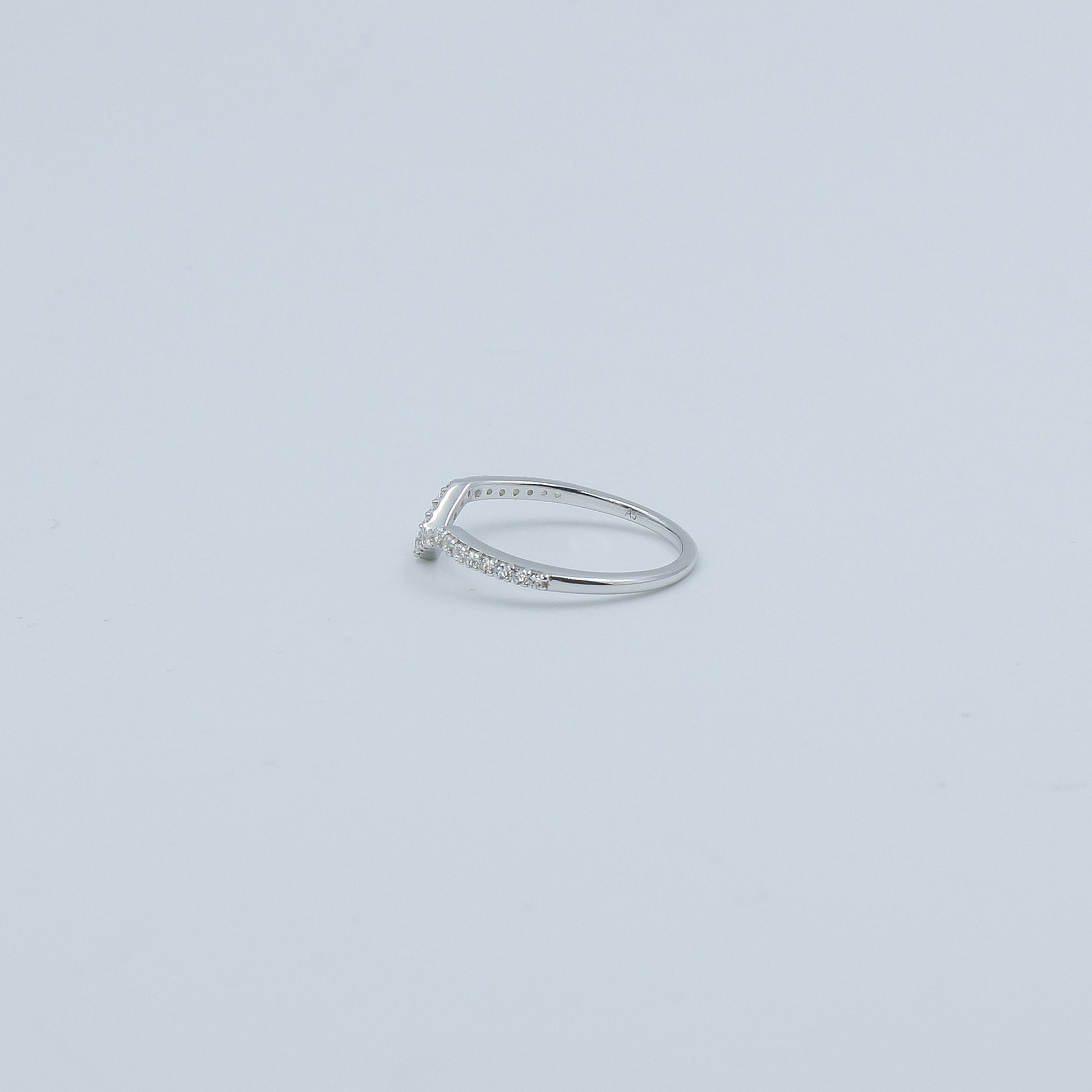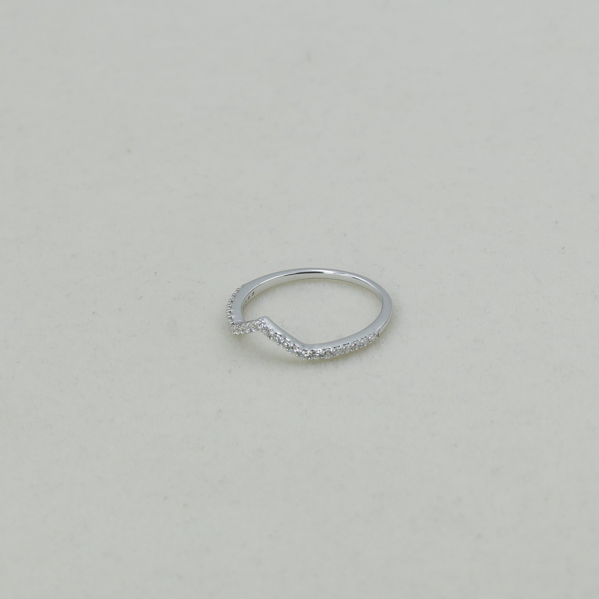 Define modern minimalism with the Diamond Chevron V-Band Ring - AJ12032. This elegant "ring" features a classic wishbone or V-shaped silhouette, designed to offer a flattering, elongated look on the finger. The slender band is meticulously pavé-set with a continuous row of shimmering diamonds that meet at a graceful central point, creating a sharp yet feminine aesthetic.