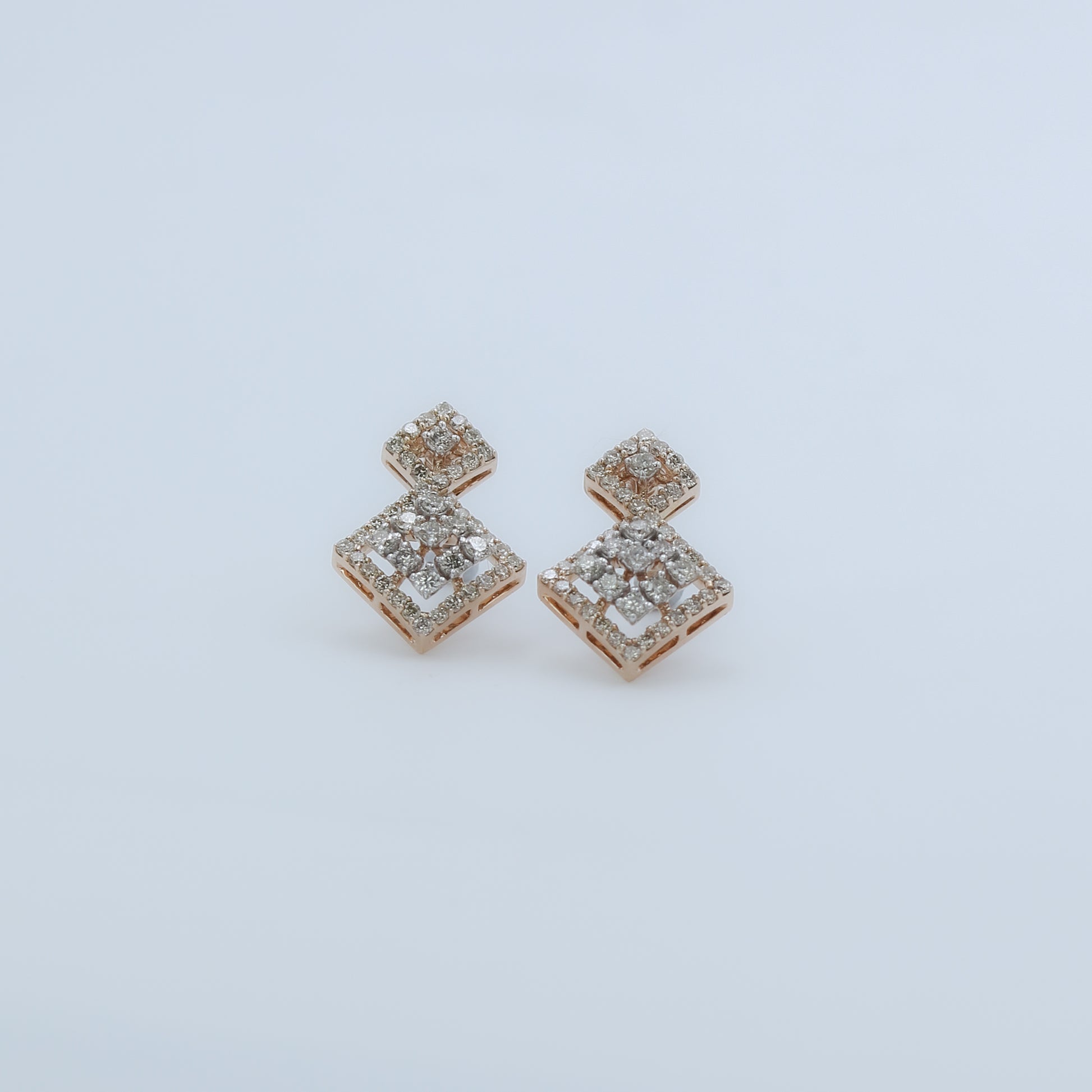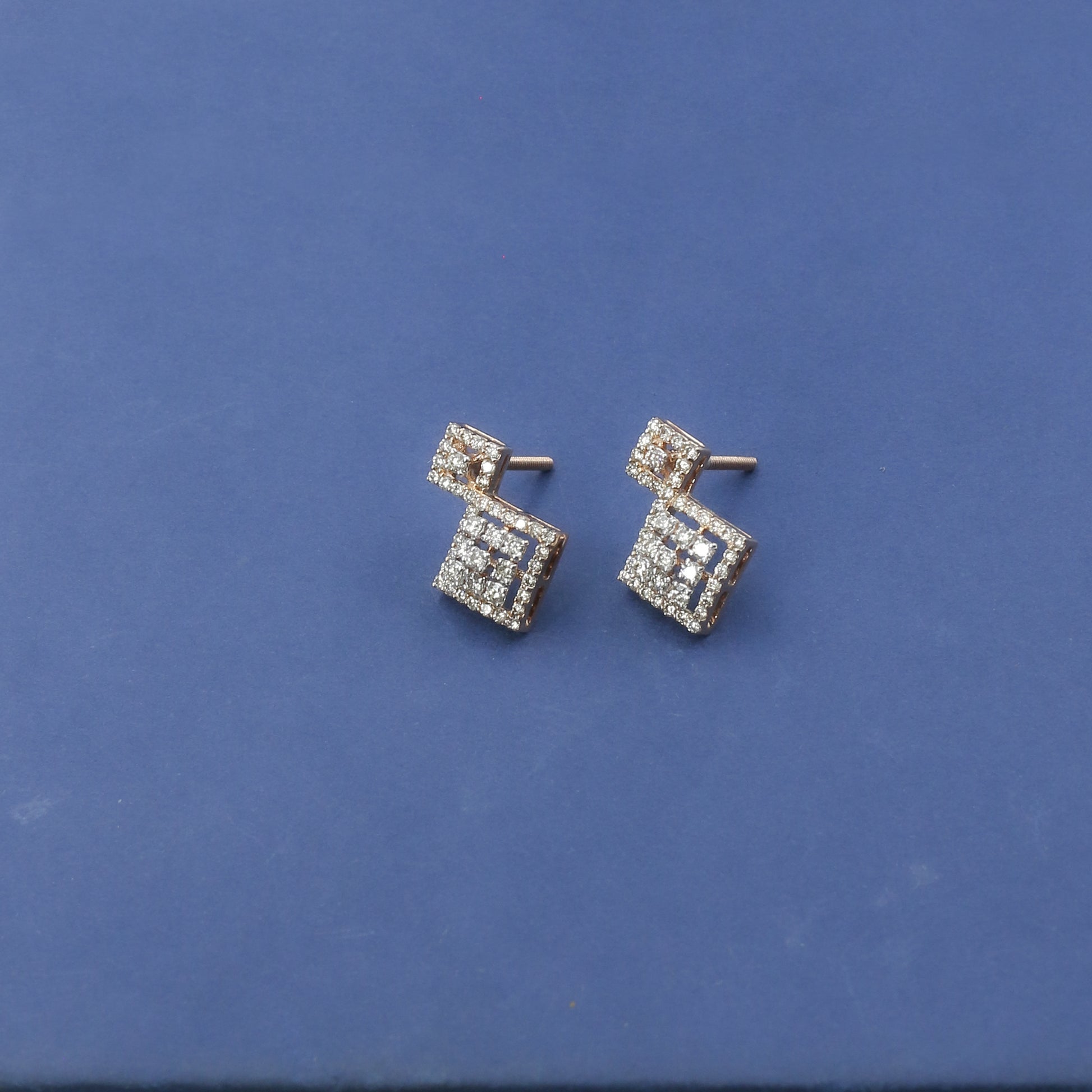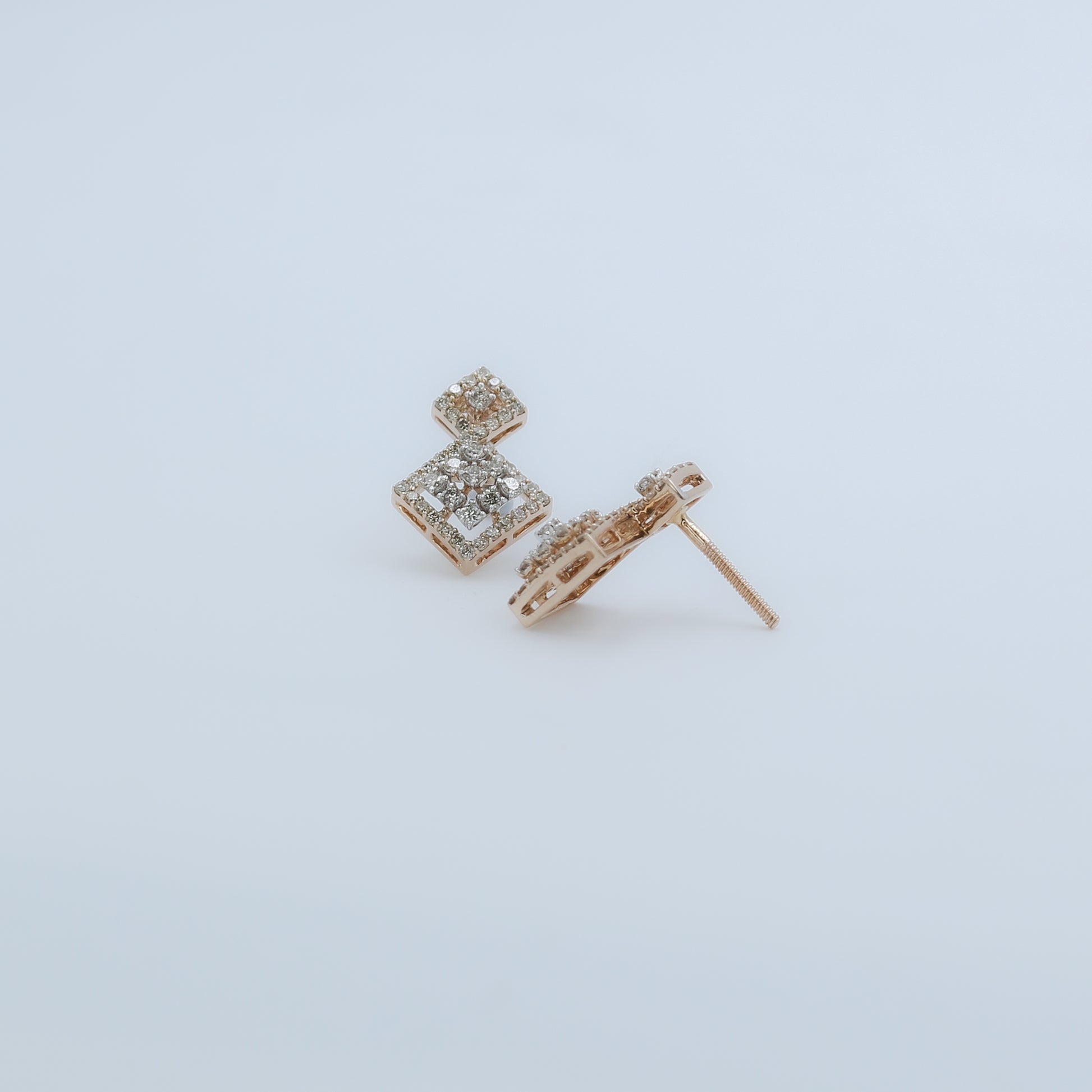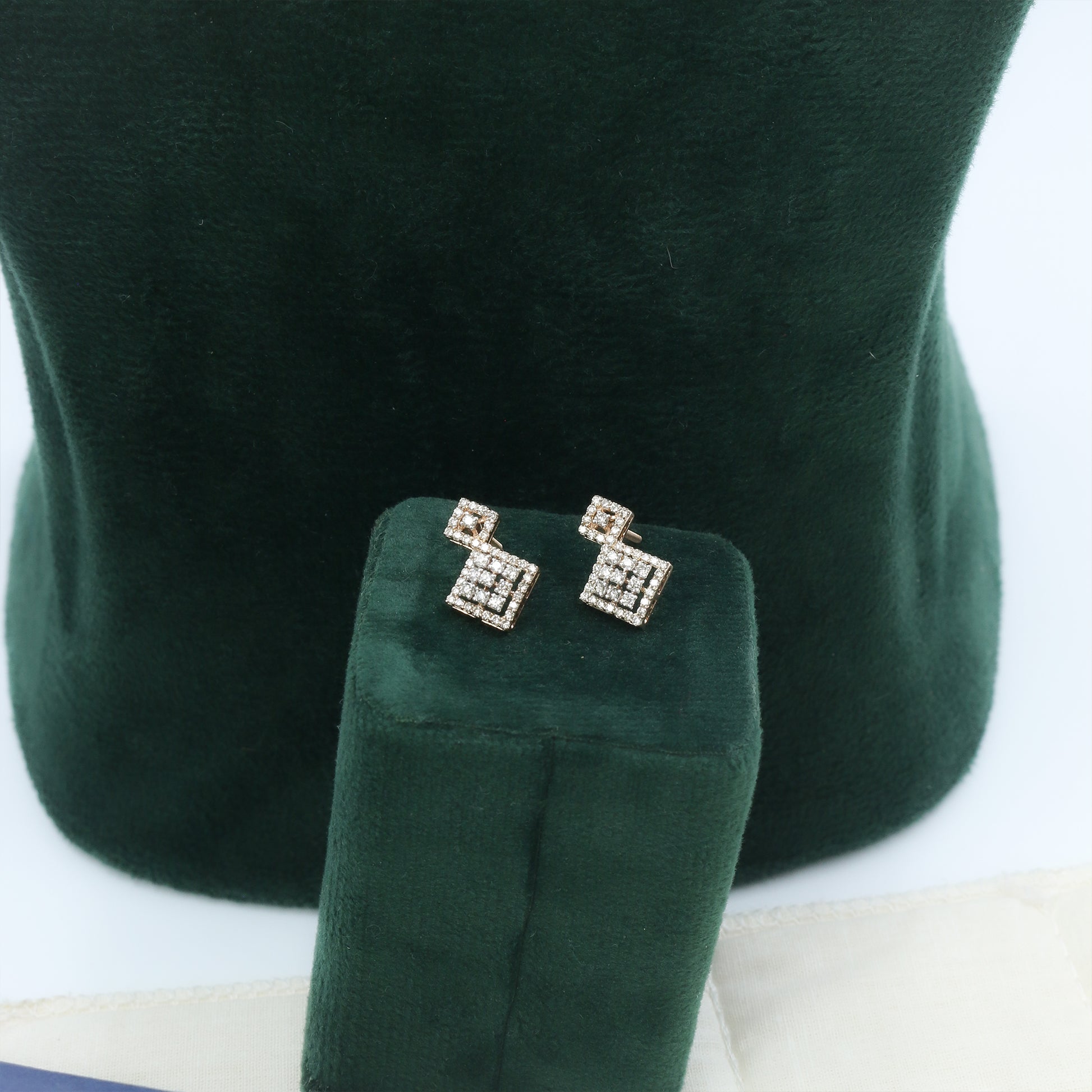 Redefine modern sophistication with the Diamond Geometric Drop Stud Earrings - AJ12020. These "earrings" feature a striking, tiered architectural silhouette where two diamond-encrusted squares are connected by a sleek metal bar to create a dynamic drop effect. The open-frame design plays with negative space, allowing the 90 individual brilliant-cut diamonds to capture light from every angle.