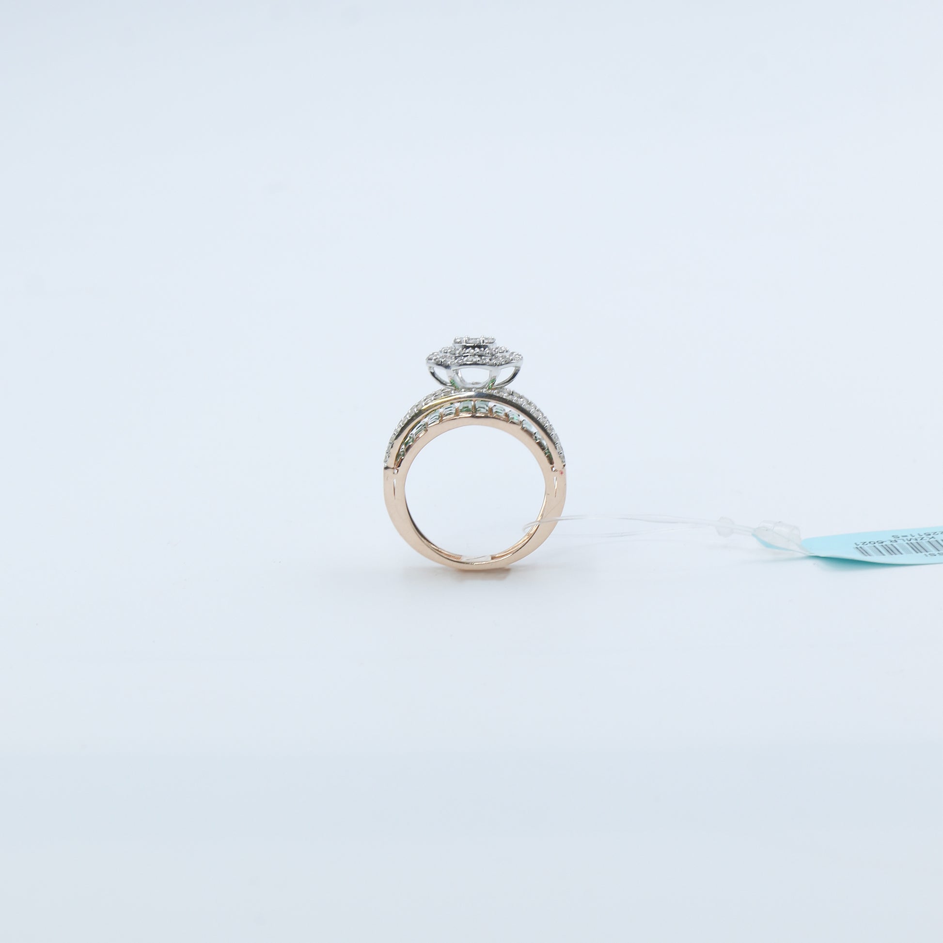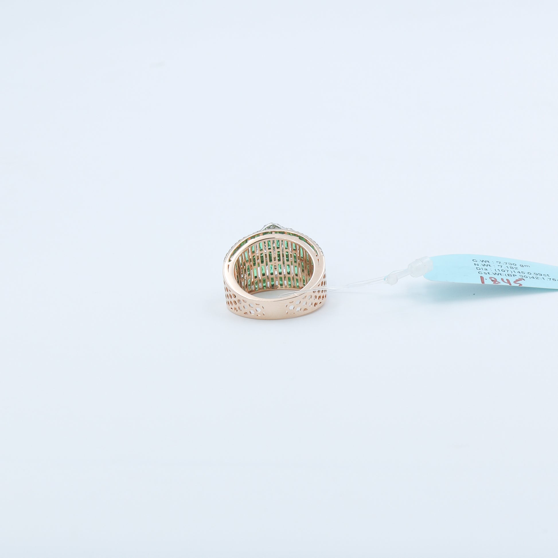 Crafted with a substantial gross weight of 7.73 grams, this ring offers a heavy, premium feel on the hand, making it the perfect centerpiece for your evening attire. The intricate setting houses 145 individual diamonds (0.99 ct total) of IJ color and VSSI clarity, ensuring a continuous field of sparkle that contrasts beautifully with the lush green hues. Finished in a warm, lustrous metal, the AJ12002 is a sophisticated blend of bold color and timeless diamond brilliance, designed for the woman who wants her jewelry to tell a story of glamour.