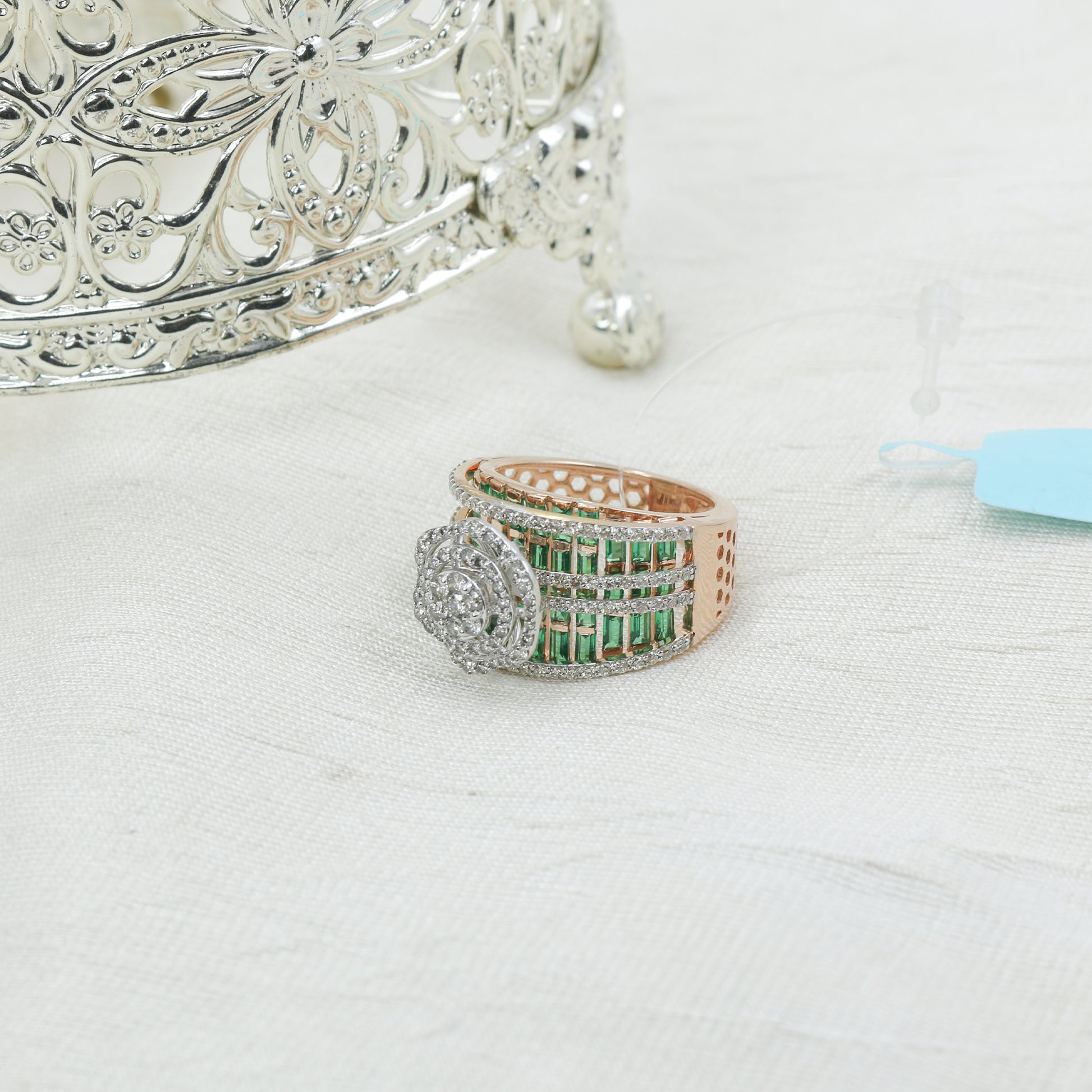 Diamond & Green Colorstone Wide Band Statement Ring