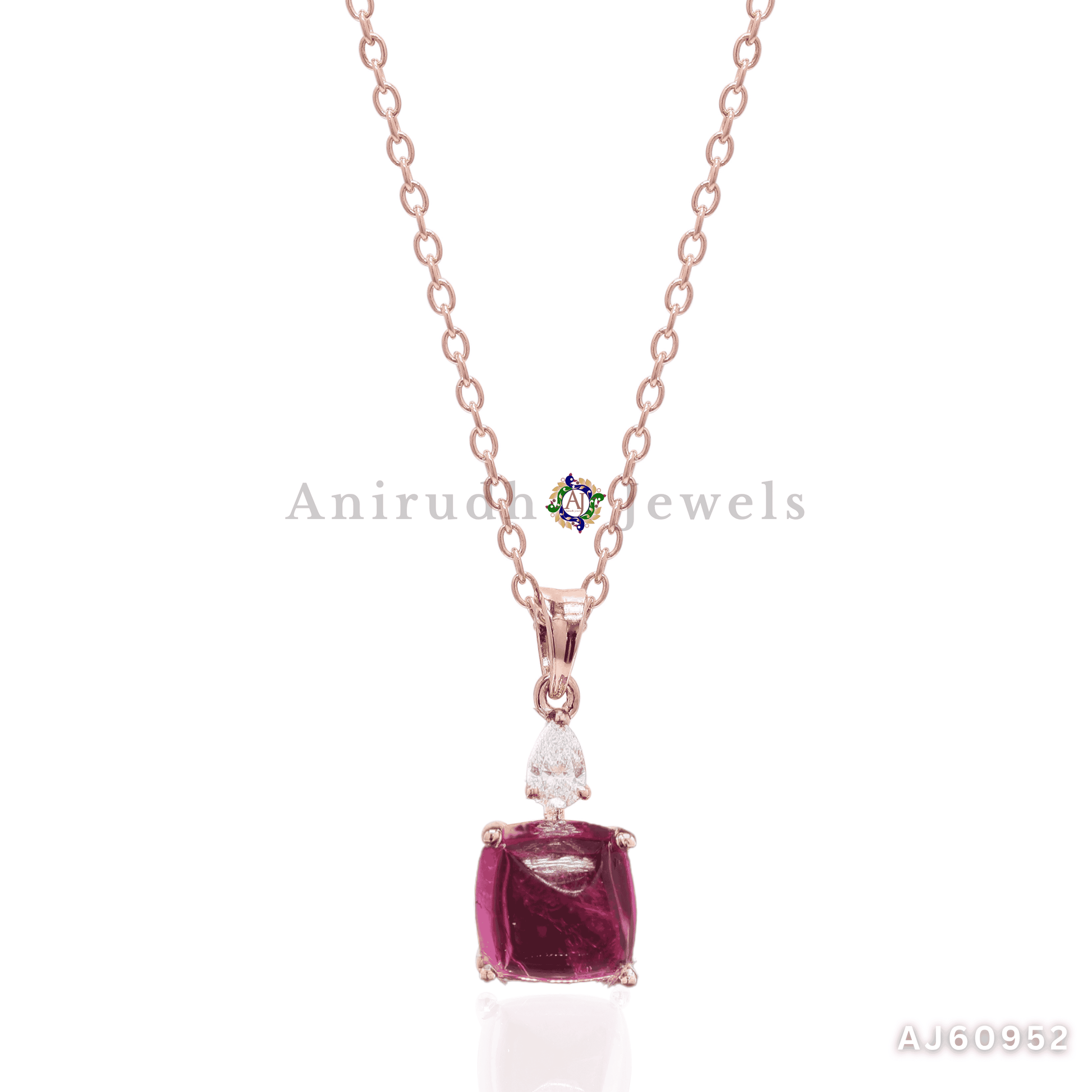 Add a vibrant touch of luxury with the Elegant Ruby and Diamond Pendant by Anirudh Jewels. This stunning pendant features a rich, deep-red ruby centerpiece beautifully complemented by sparkling pear-cut diamond that enhance its brilliance. Crafted in high-quality gold, the pendant balances classic elegance with modern design. Perfect for gifting or elevating everyday style, this pendant is a timeless addition to any jewelry collection.