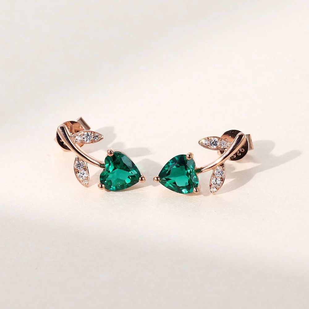 The pair features two 6mm Emeralds, totaling 1.6 Ct in weight. These vibrant stones are enhanced by subtle diamond accents, which provide a total weight of 0.015 Ct. The white metal setting (inferred) surrounding the stones beautifully contrasts with the deep green of the Emeralds, emphasizing their brilliance and color.