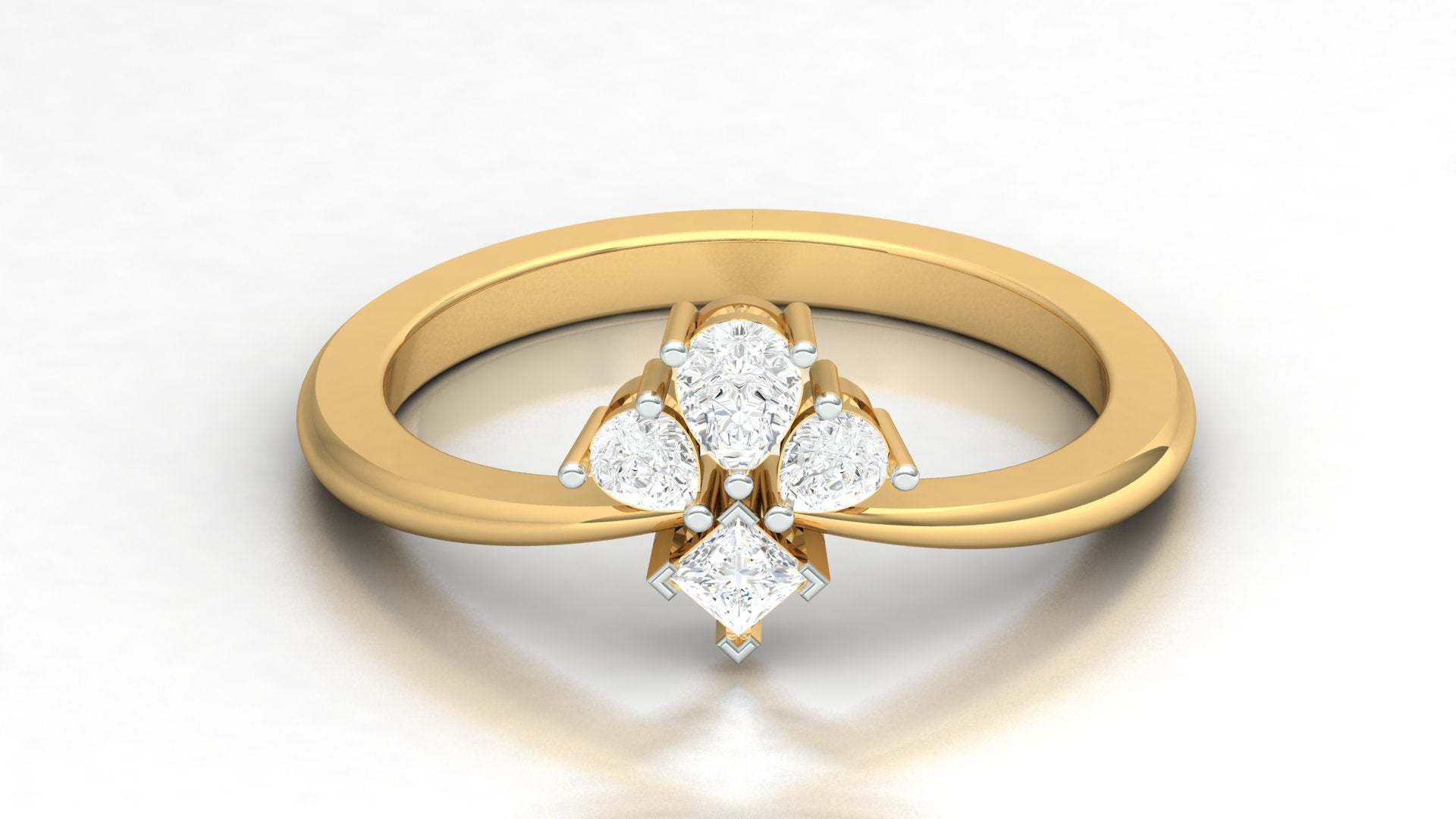The center cluster is formed with 4 premium CVD diamonds totaling 0.37 Ct, each graded EF-VVS to ensure exceptional clarity, brilliance, and fire. The marquise arrangement creates a delicate floral-inspired sparkle, making this ring an ideal choice for women who love refined, graceful, and timeless jewelry.