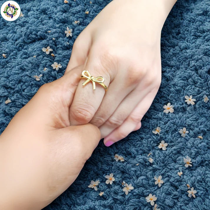 This Minimalist Golden Bow Ring By Anirudh Jewels is Elegant and dainty, it’s perfect for daily wear or gifting. The delicate bow design symbolizes love and connection, making it a timeless addition to your jewelry collection. Stylish, lightweight, and beautifully versatile.