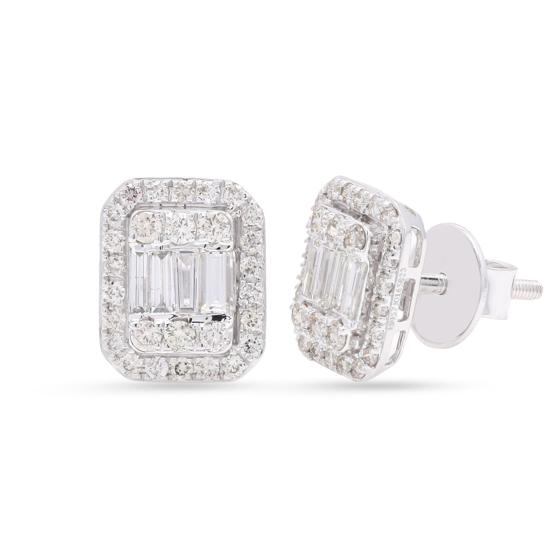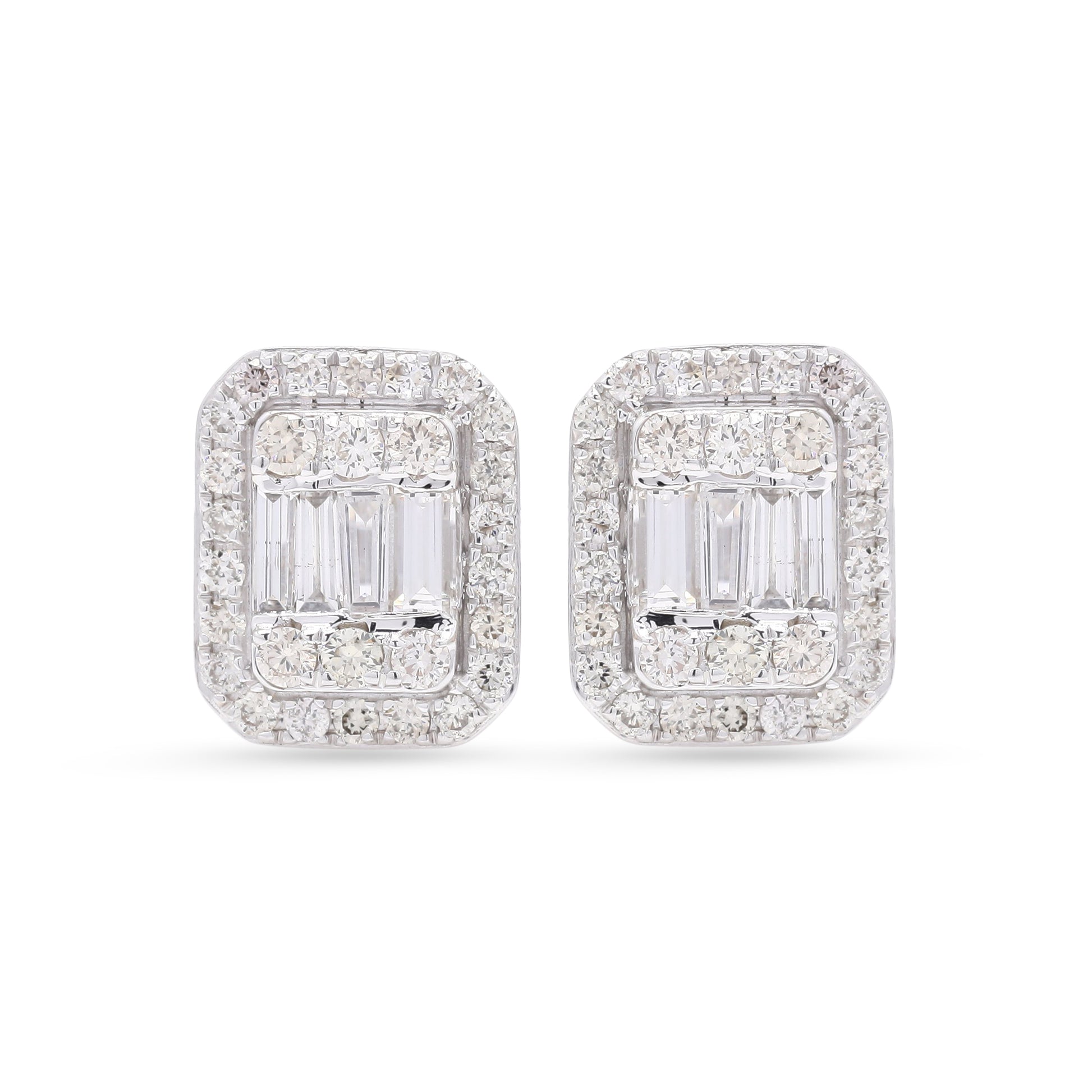 Octagon White Gold Diamond Halo Stud Earring