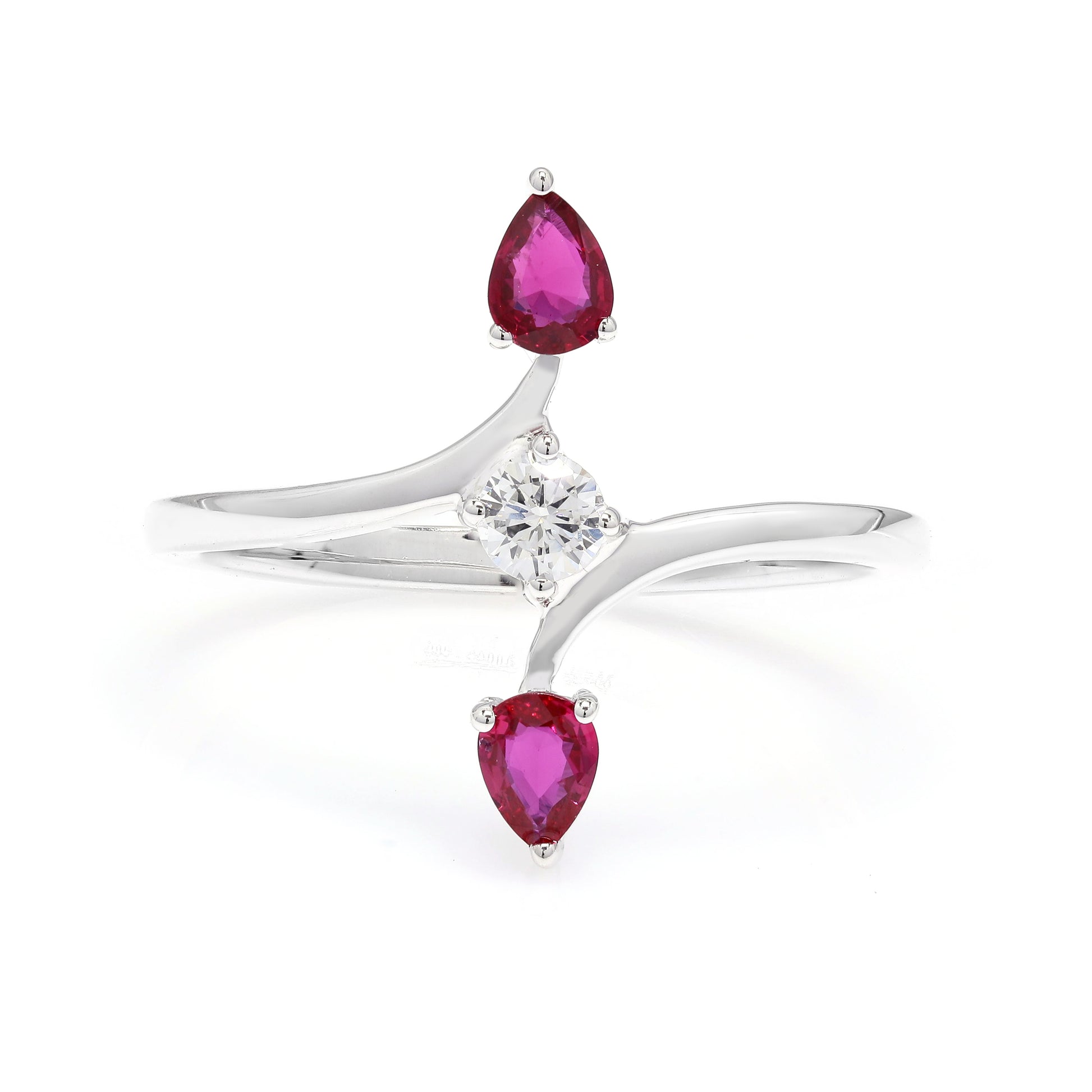 Elevate your style with this stunning Ruby Diamond Bypass Ring, expertly crafted in 14k gold. The ring features a vibrant pear-shaped ruby embraced by sparkling diamonds in a graceful bypass design, symbolizing elegance and individuality. Perfect for special occasions or as a statement piece for everyday wear, this ring combines timeless sophistication with modern artistry.