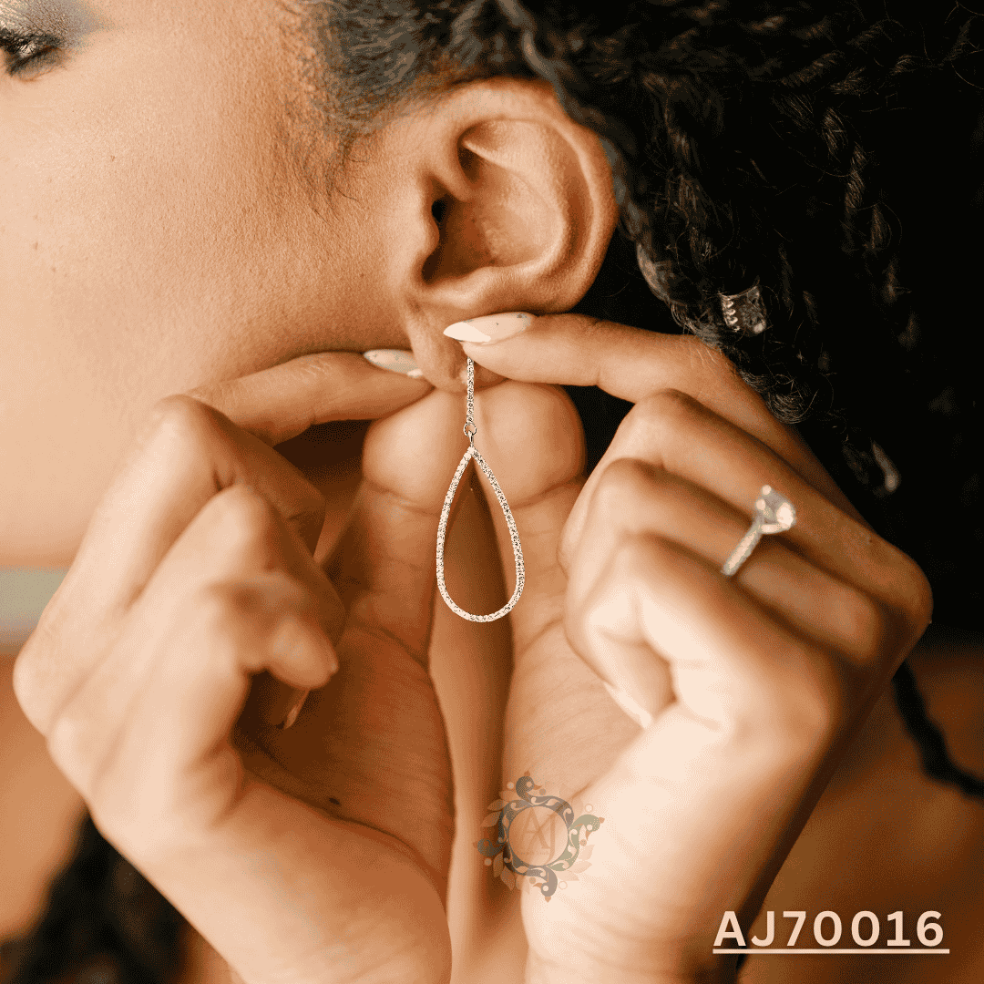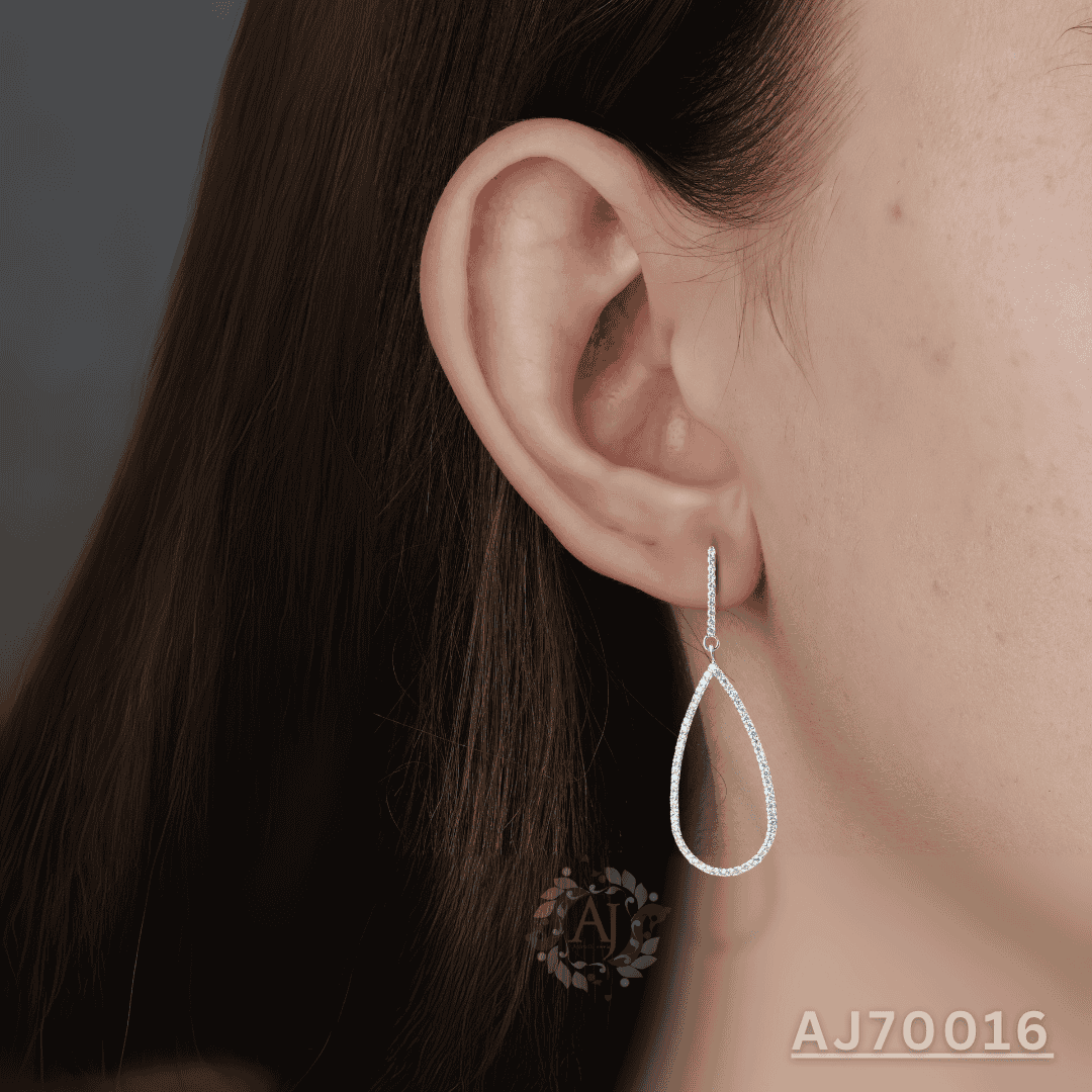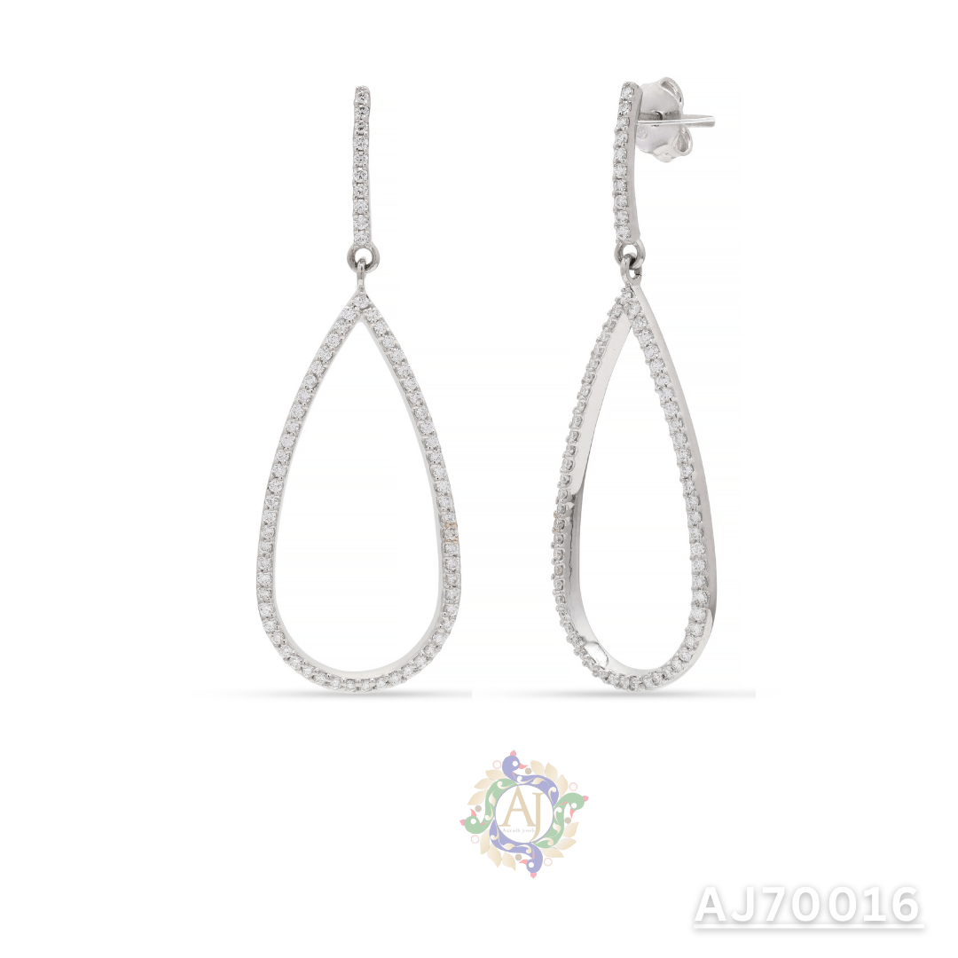 Turn heads with the graceful elegance of the Teardrop Radiance Diamond Earrings by Anirudh Jewels. Designed with a sleek elongated teardrop silhouette, each earring sparkles with a full border of meticulously set diamonds. The open design offers a lightweight yet impactful look—perfect for evening wear, weddings, or adding a refined touch to formal attire. Handcrafted with care and fully customizable to your style.
