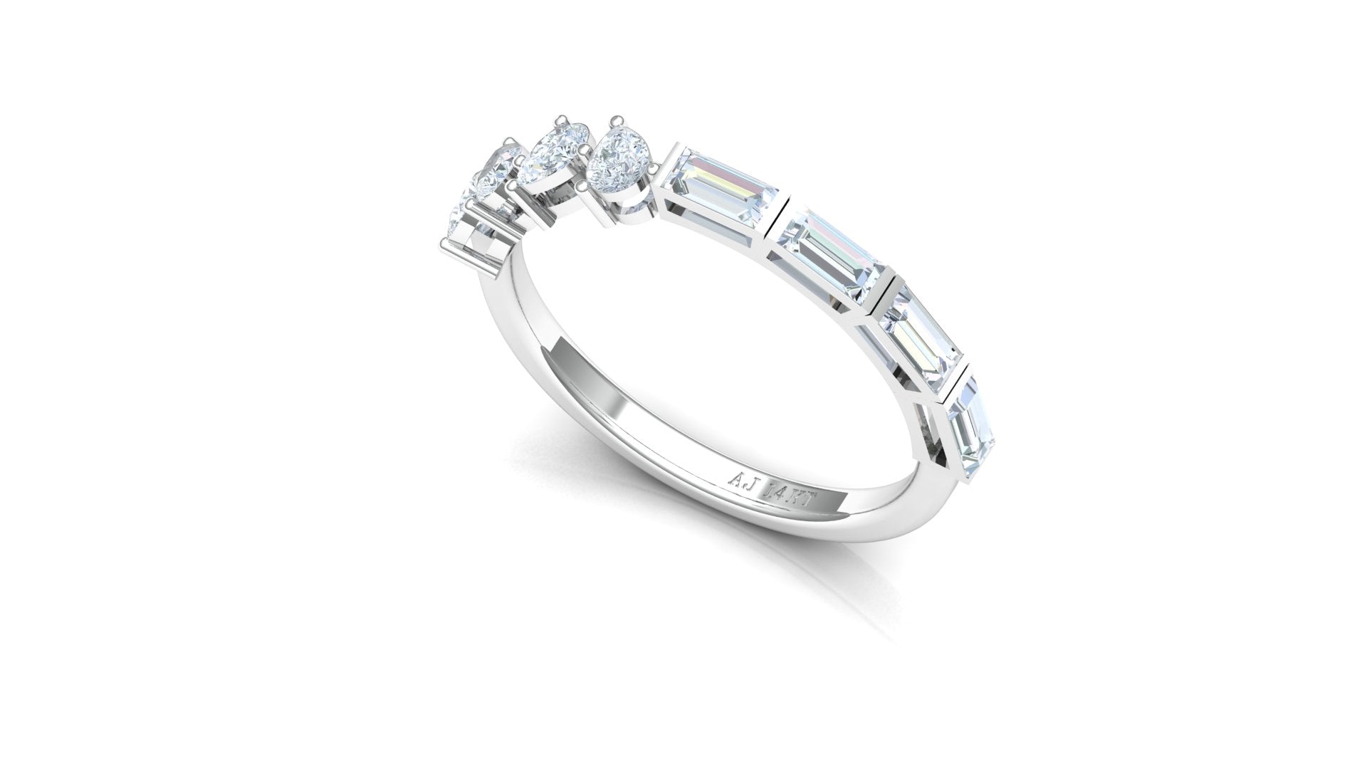 Introducing the refined and modern Two-Tone Baguette Diamond Half-Eternity Band - ST-2197 (B). This slender ring features a continuous sparkle across the top half of the band, thanks to 8 precisely set diamonds, totaling a significant 0.76 Ct.