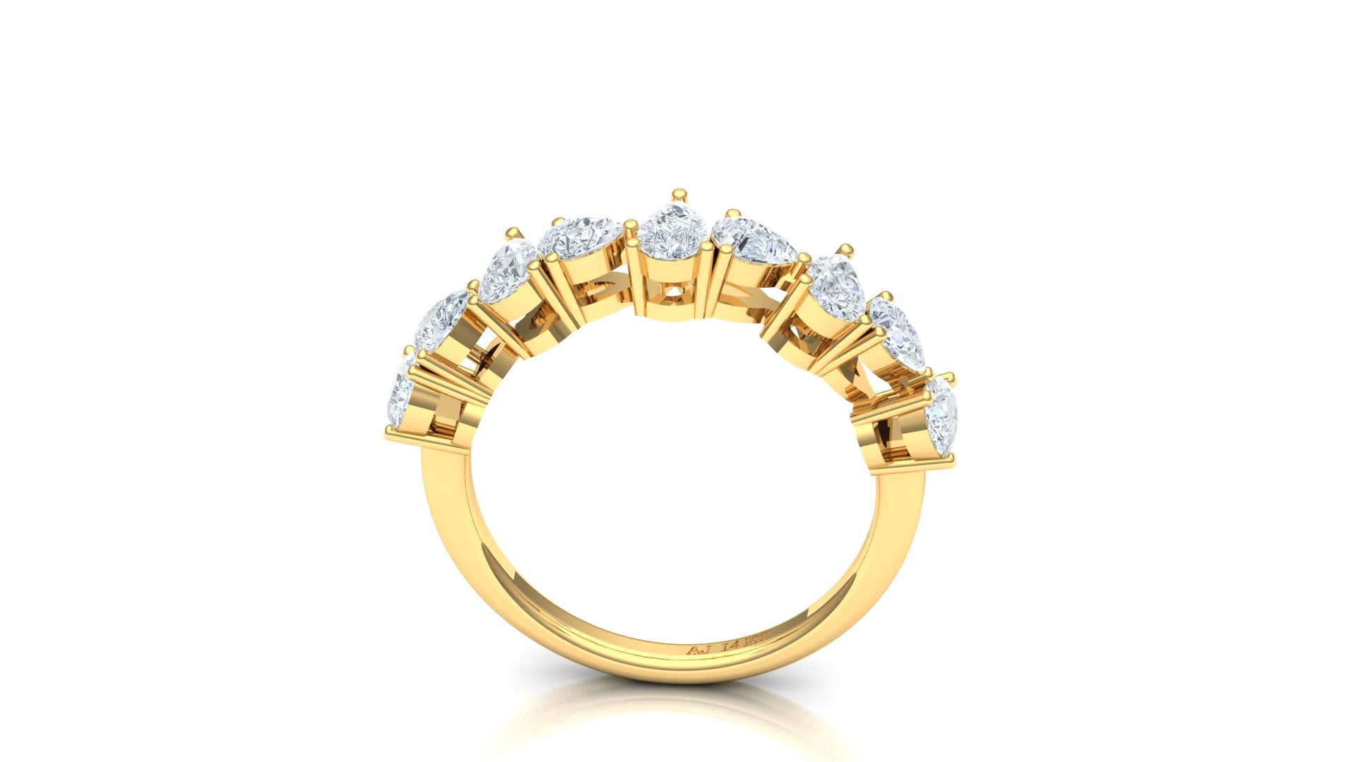 The design features large, central diamonds (inferred: round and marquise-like cuts) set prominently in white metal prongs (inferred), flanked by groups of smaller diamonds on either side. This arrangement creates an appealing floral or abstract multi-stone cluster effect that covers a significant portion of the band. The substantial 3.01 grams of yellow gold (inferred) provide a solid and luxurious foundation for the dazzling diamonds. The ring is a standard US 7 size.
