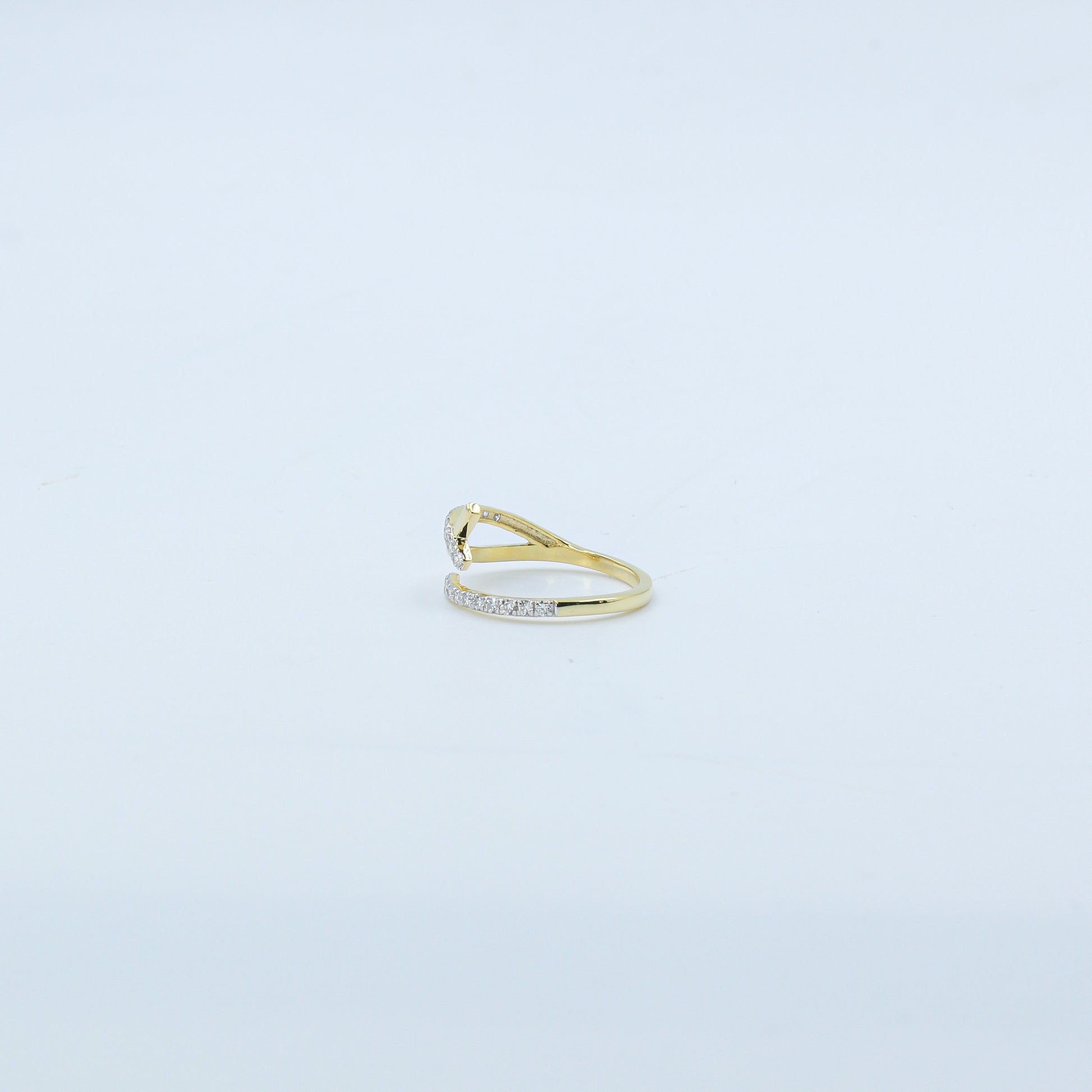 Elevate your style with the Two-Tone Crossover Diamond Bypass Ring - AJ61217. This elegant piece features a fluid bypass design where two bands gracefully cross over each other. One band is finished in polished yellow gold (inferred), while the intersecting band is paved with shimmering diamonds, creating a sophisticated two-tone aesthetic.