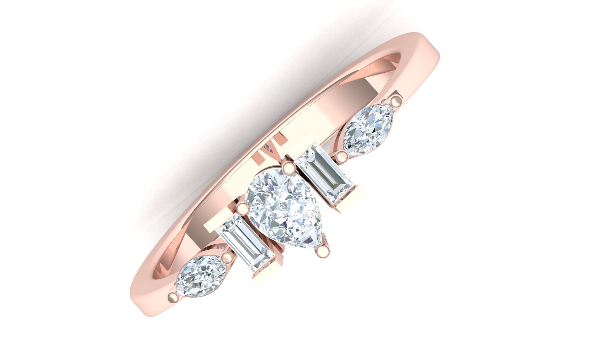 Modern five-stone design with mixed diamond shapes