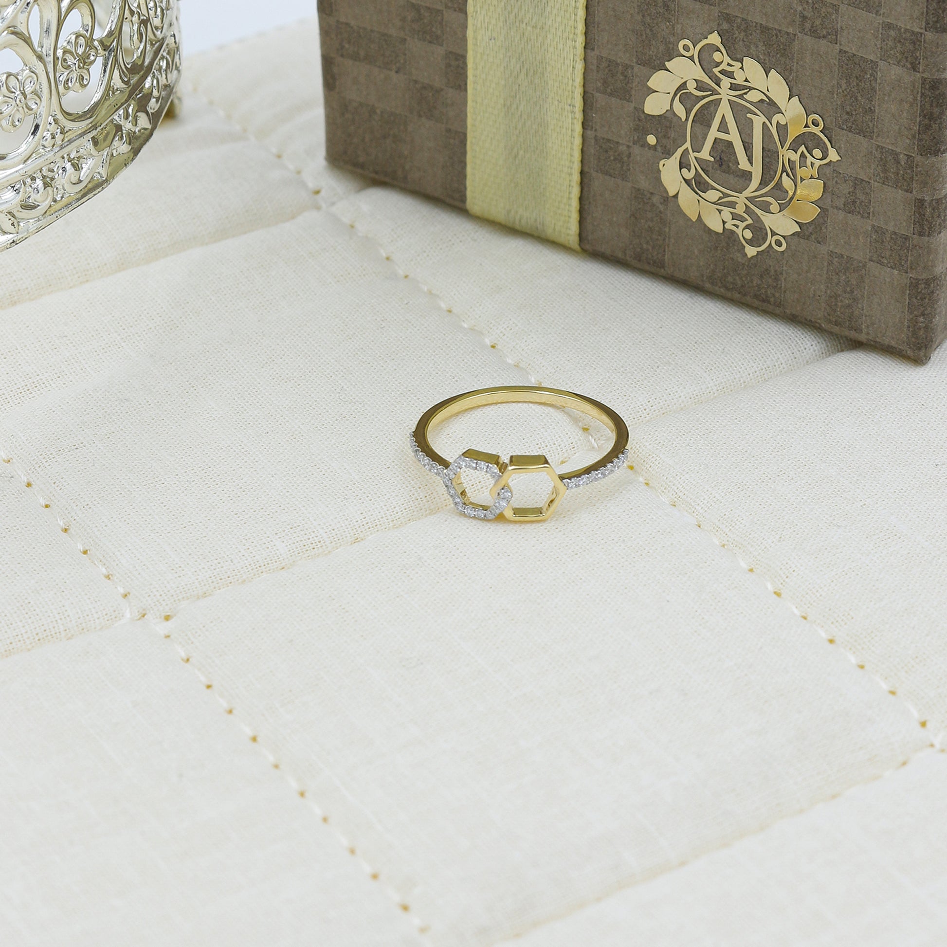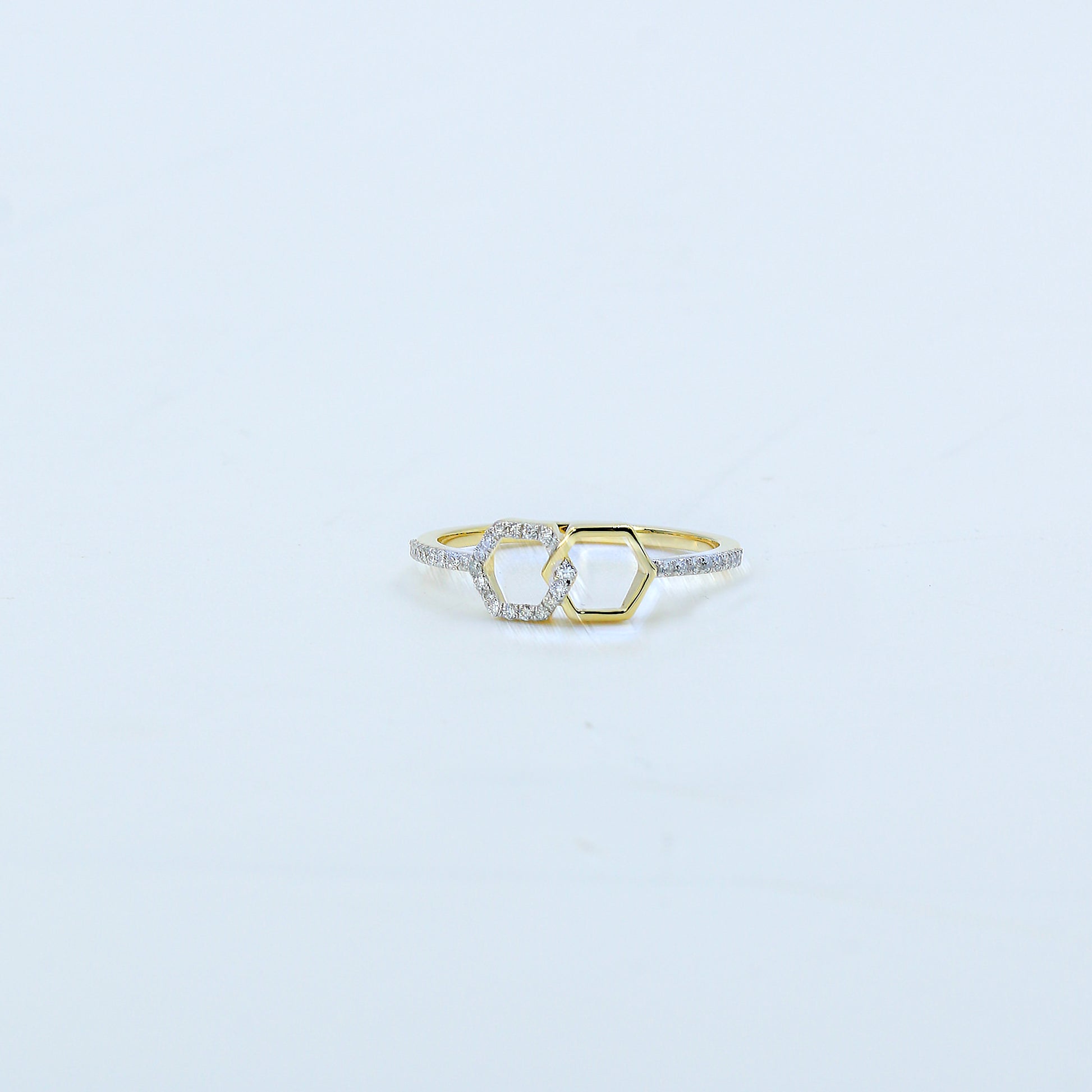 Two-Tone Hexagon Interlocking Diamond Ring
