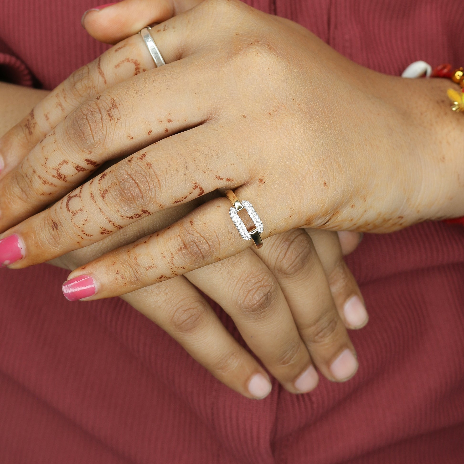 Two-Tone Pave Diamond Open Bypass Ring