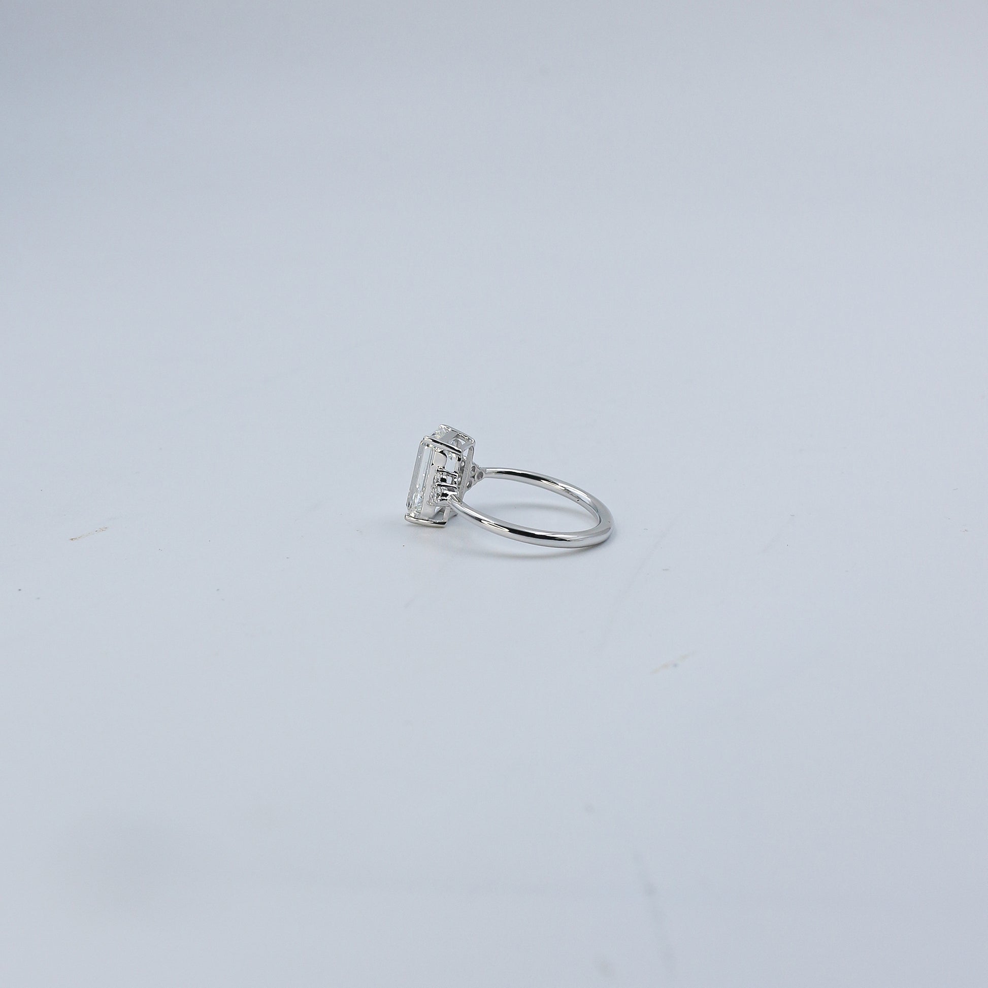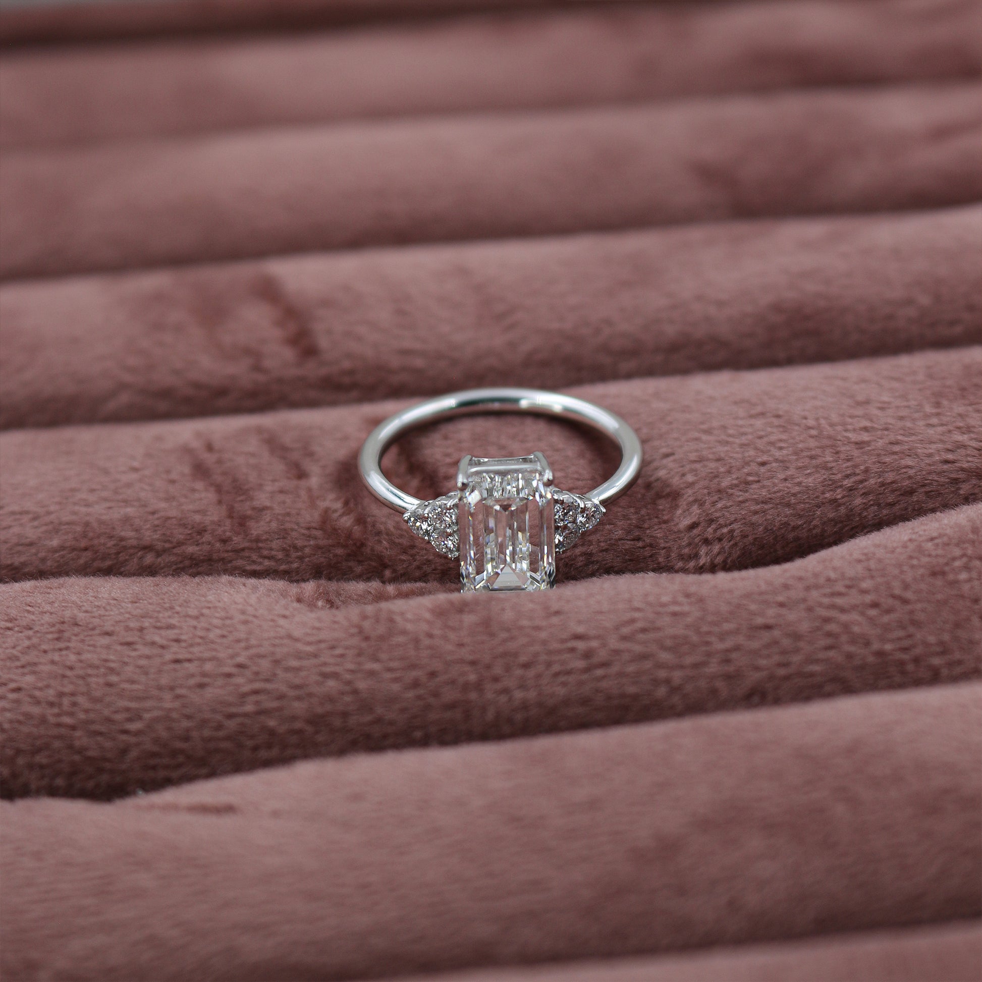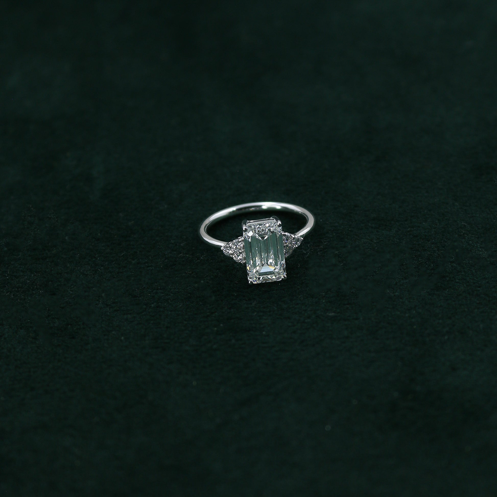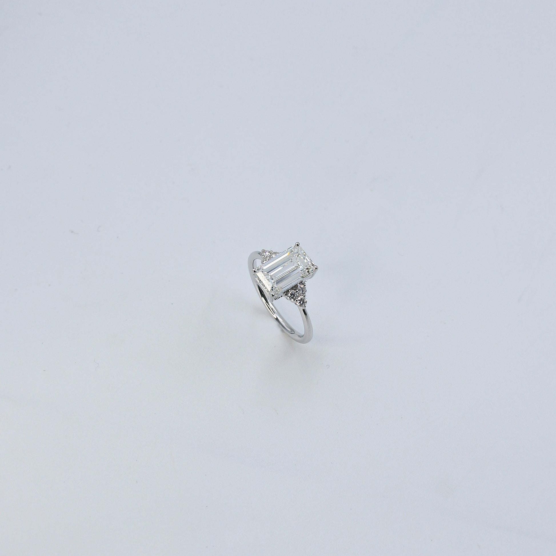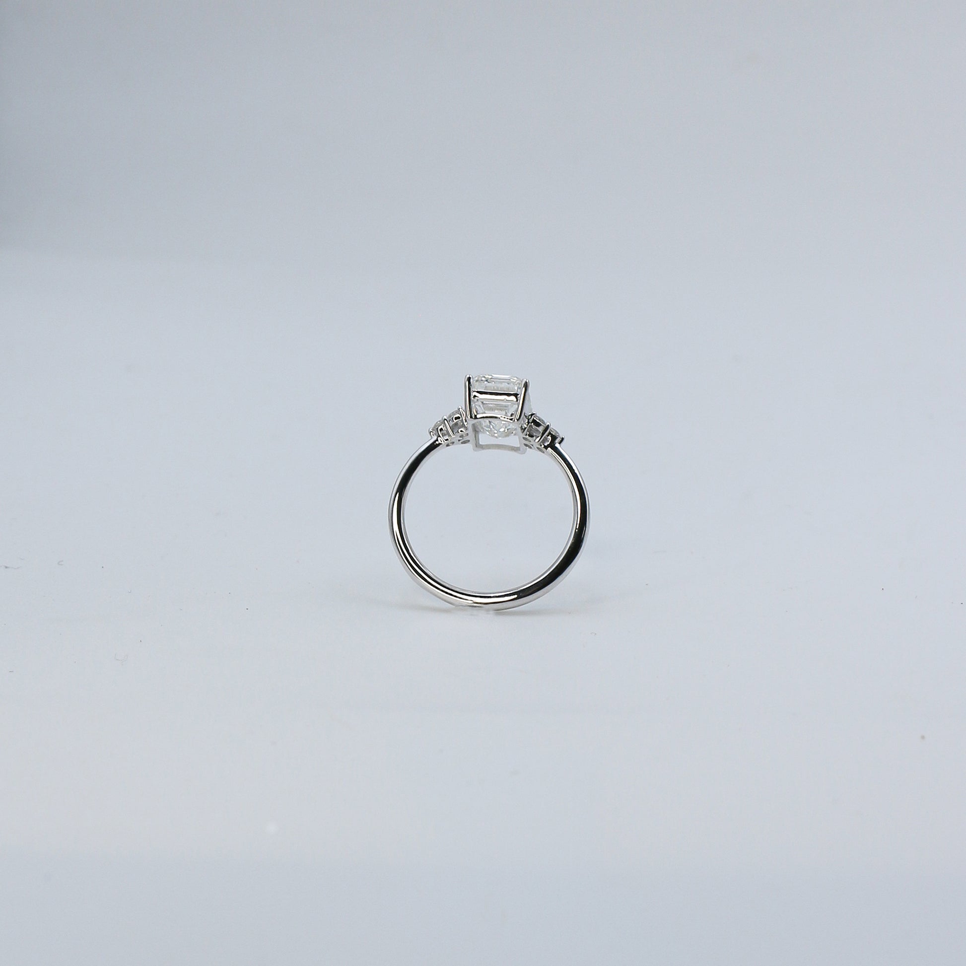 White Gold Emerald Cut Solitaire Diamond Ring with Side Accents