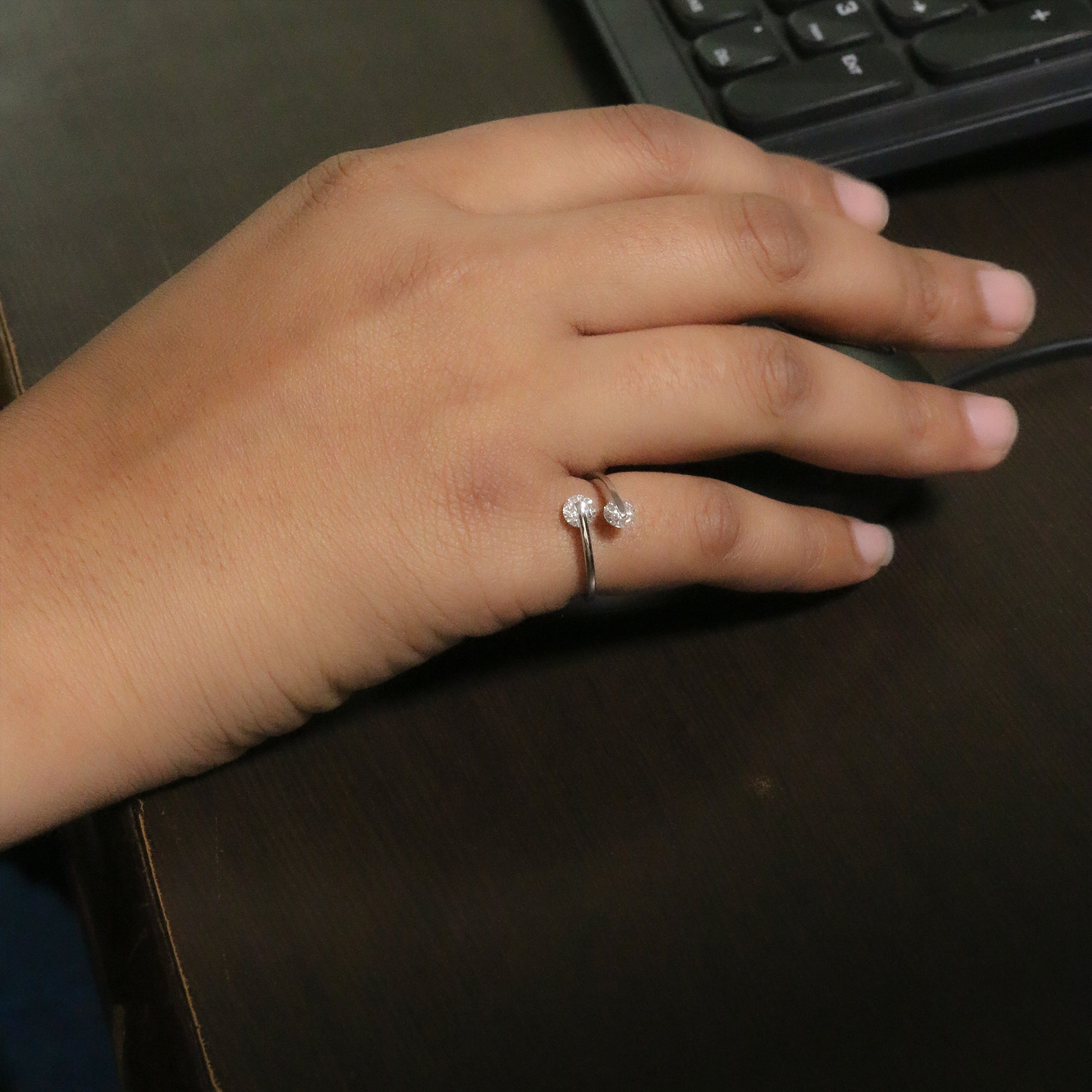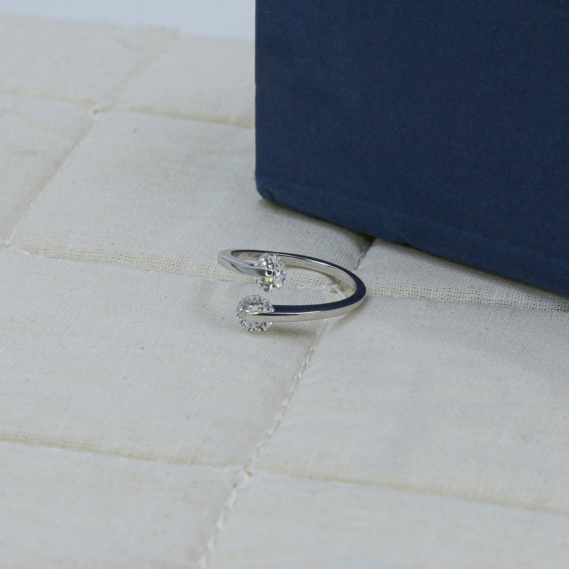 Elegant bypass silhouette that provides a modern, artistic take on the classic two-stone ring