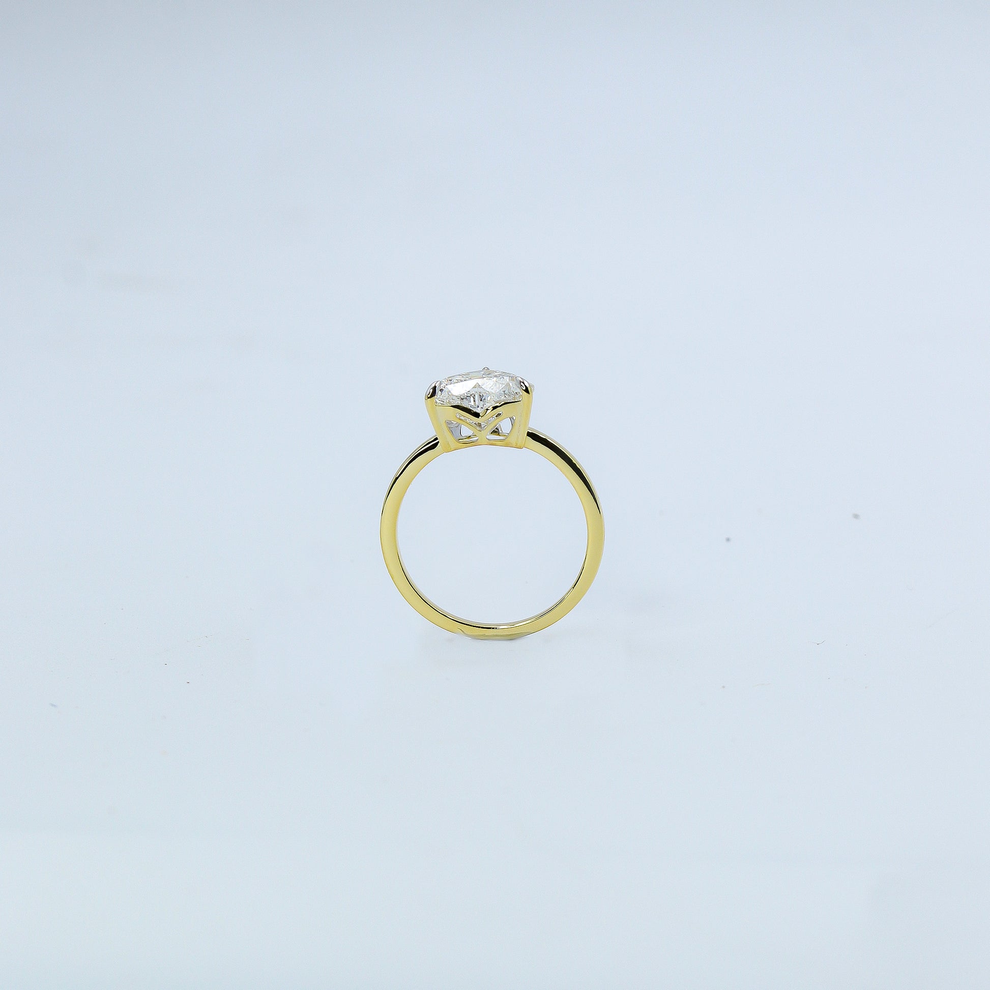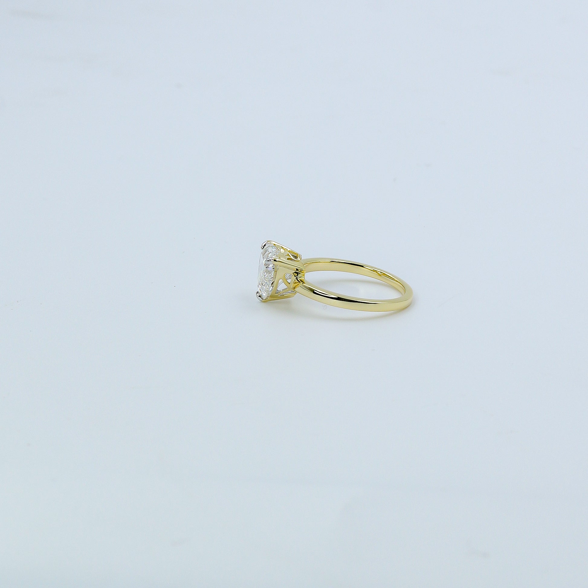 Minimalist white gold solitaire setting designed to spotlight the diamond's natural beauty