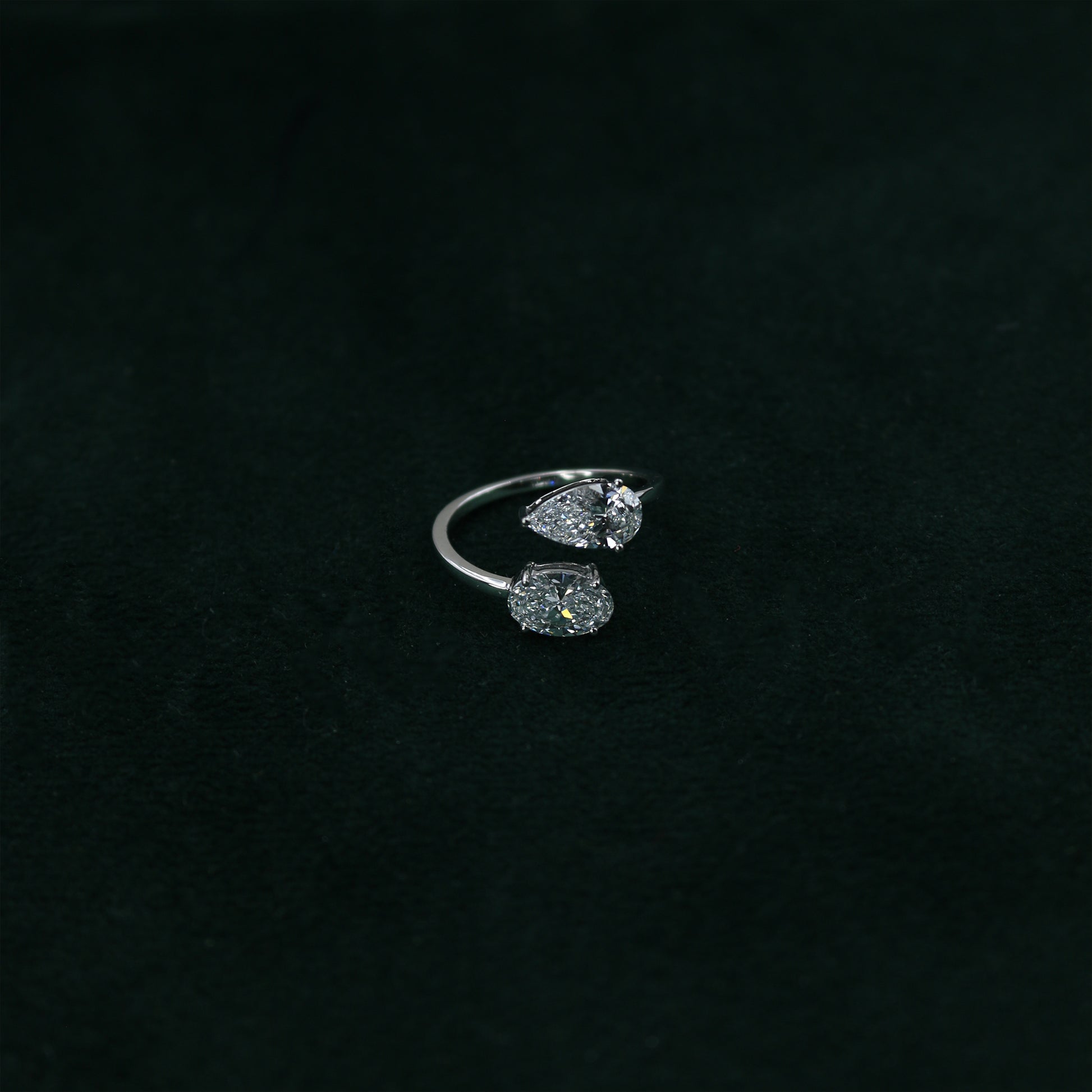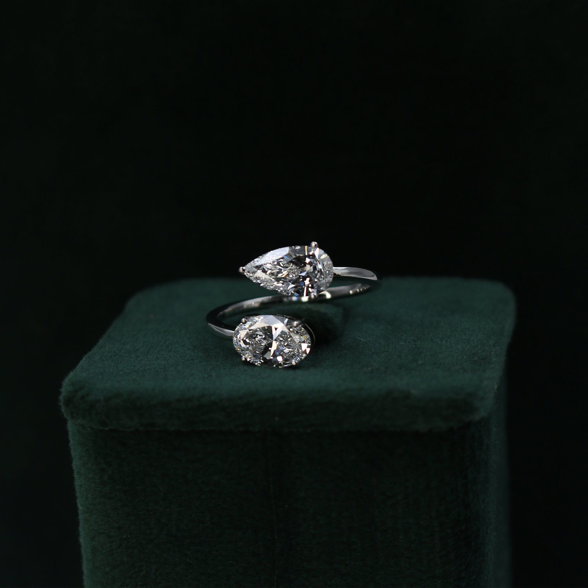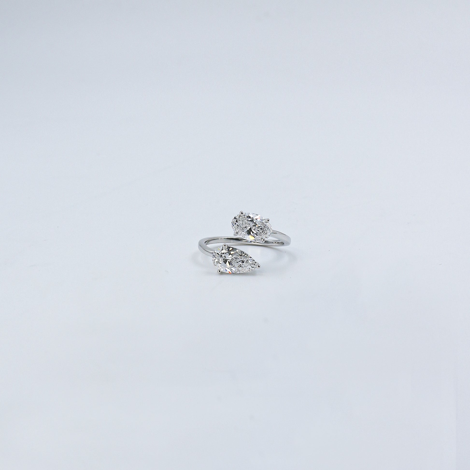 White Gold Toi et Moi Pear and Oval Diamond Bypass Ring