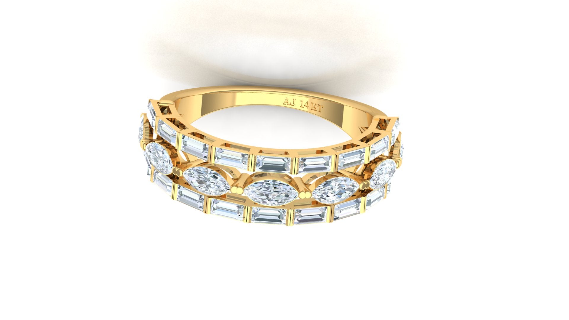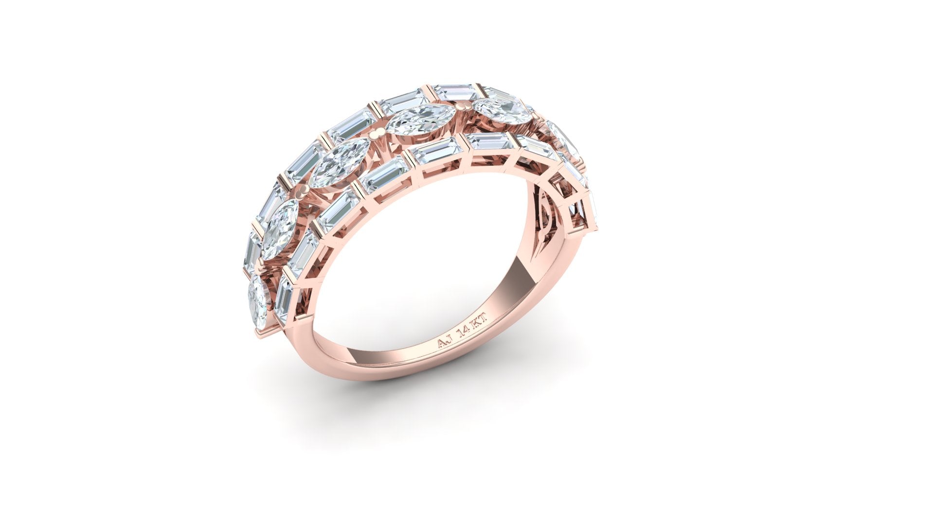 Introducing the magnificent Wide Two-Tone Geometric Diamond Statement Ring - ST-2178 (A). This piece is defined by its exceptional carat weight and complex design, featuring 41 dazzling diamonds for a total of 2.27 Ct.