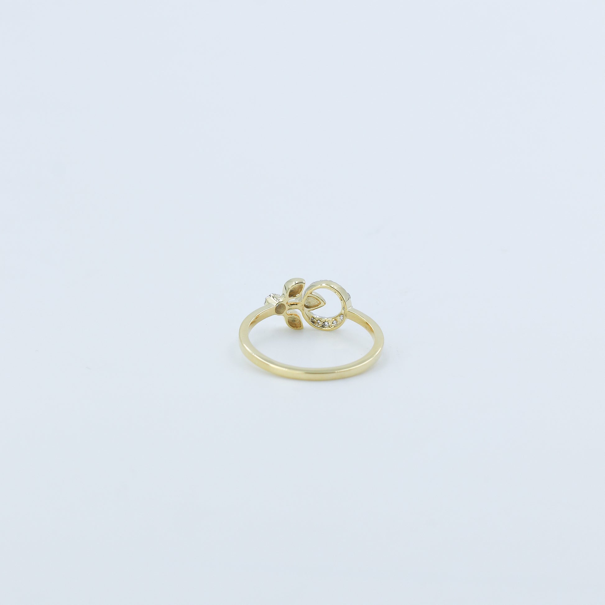 Yellow Gold Heart and Star Diamond Open Bypass Ring