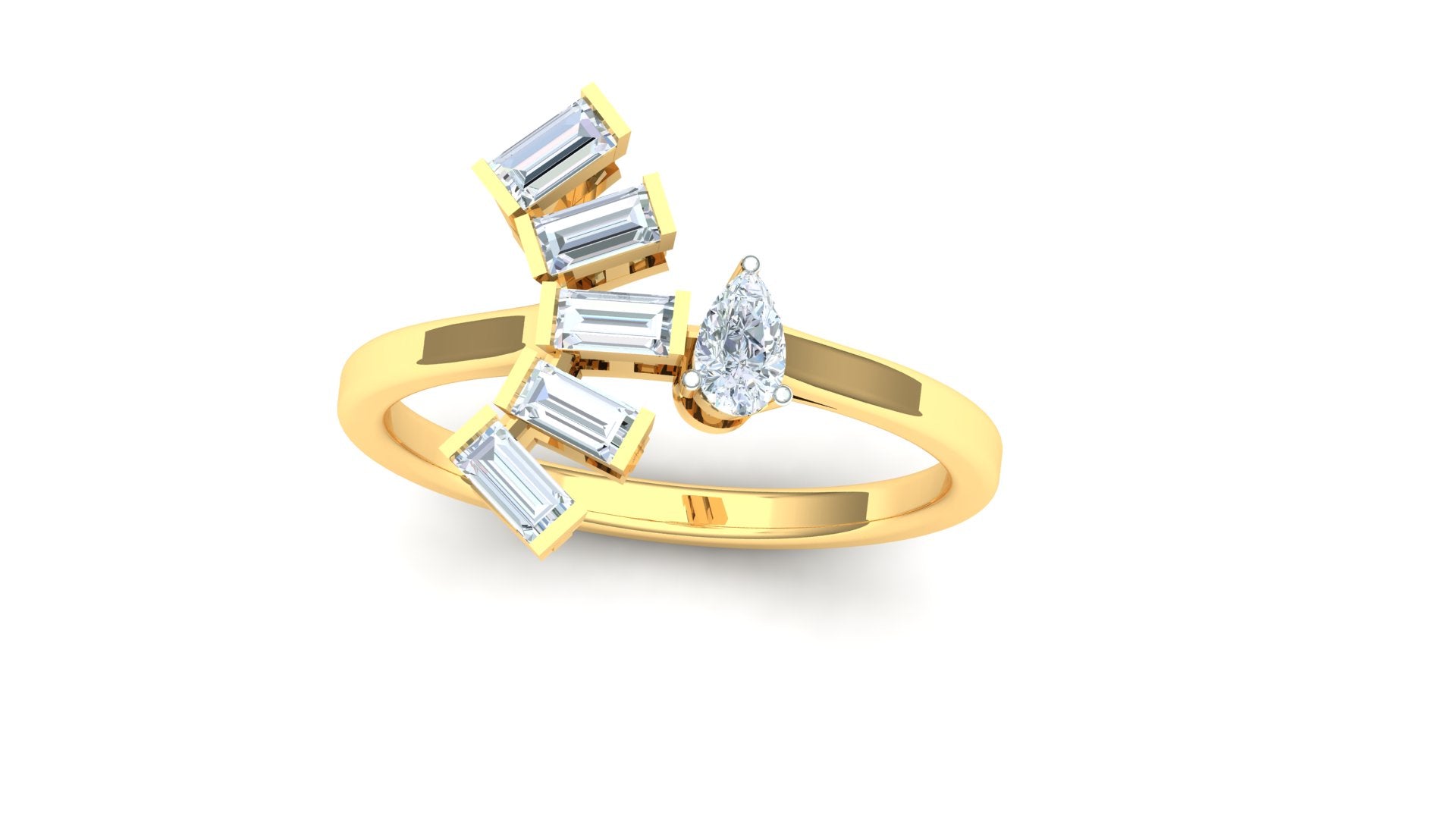 Introducing the striking Yellow Gold Multi-Row Baguette-Style Diamond Ring - ST-2129. This contemporary design uses three parallel rows of clustered diamonds (inferred) to create a bold, rectangular expanse of brilliance across the finger. The white metal settings (inferred) ensure the 6 diamonds are showcased effectively, emphasizing the substantial total diamond weight of 0.71 Ct.