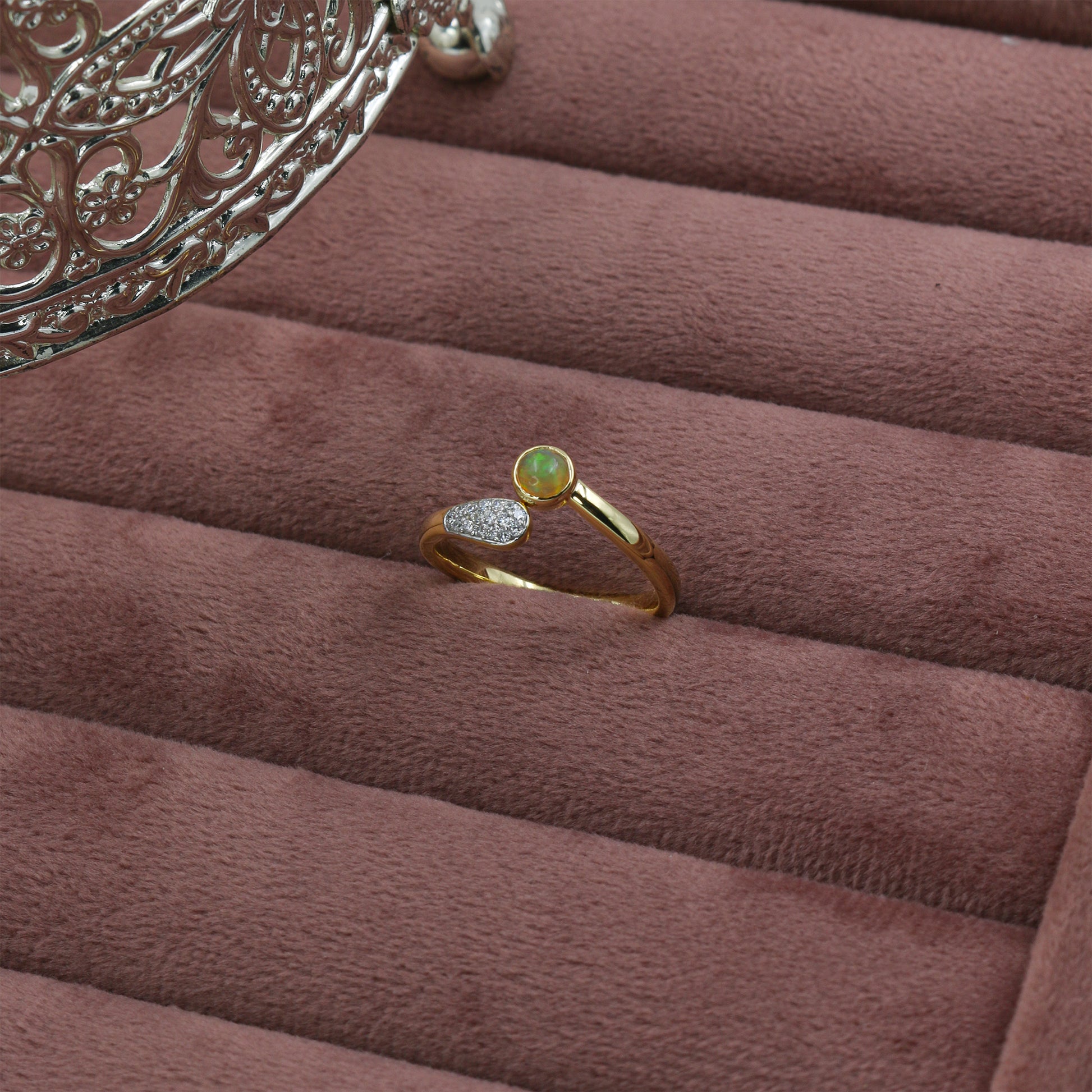 Yellow Gold Opal and Diamond Bypass Ring