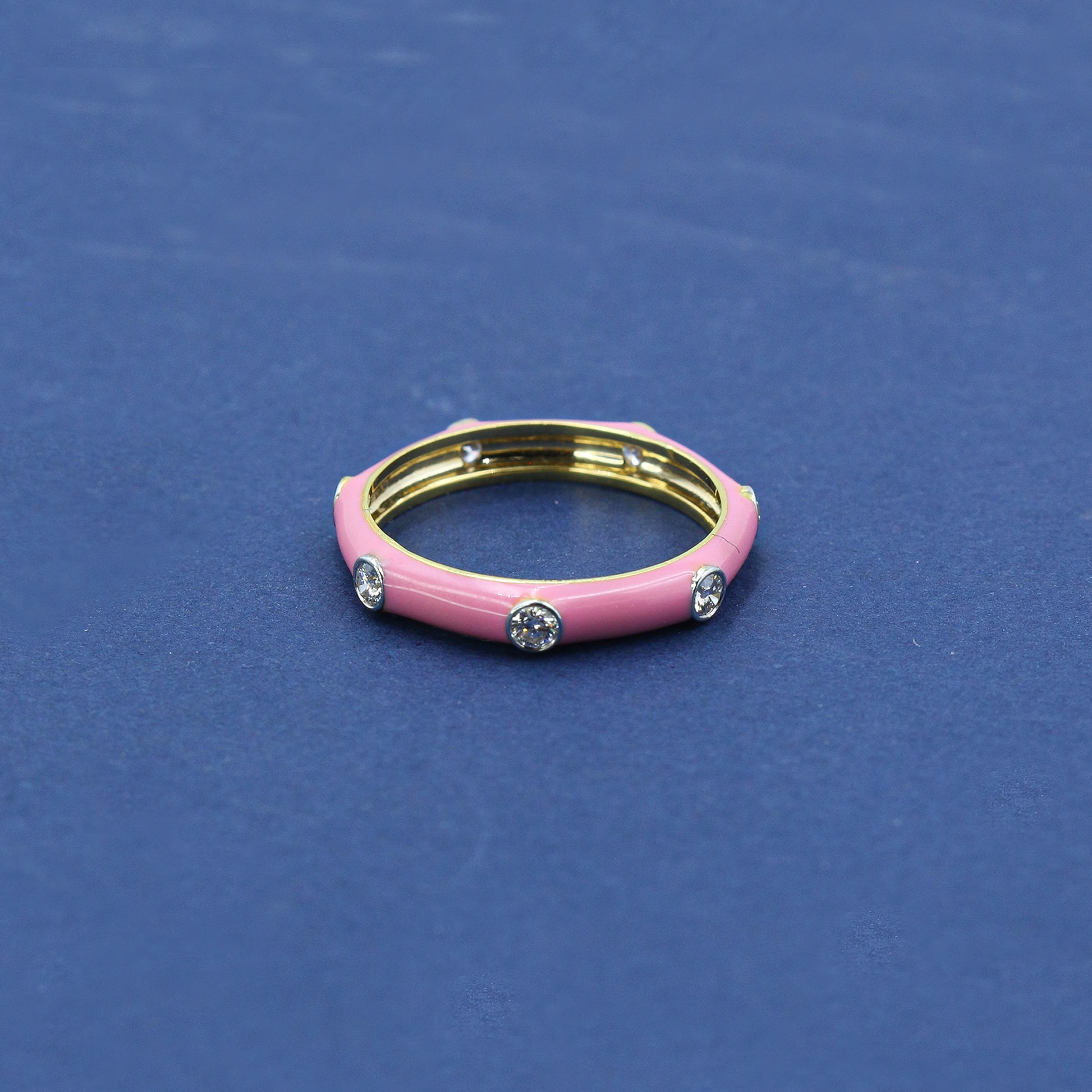Yellow Gold & Pink Enamel Lab-Grown Diamond Band