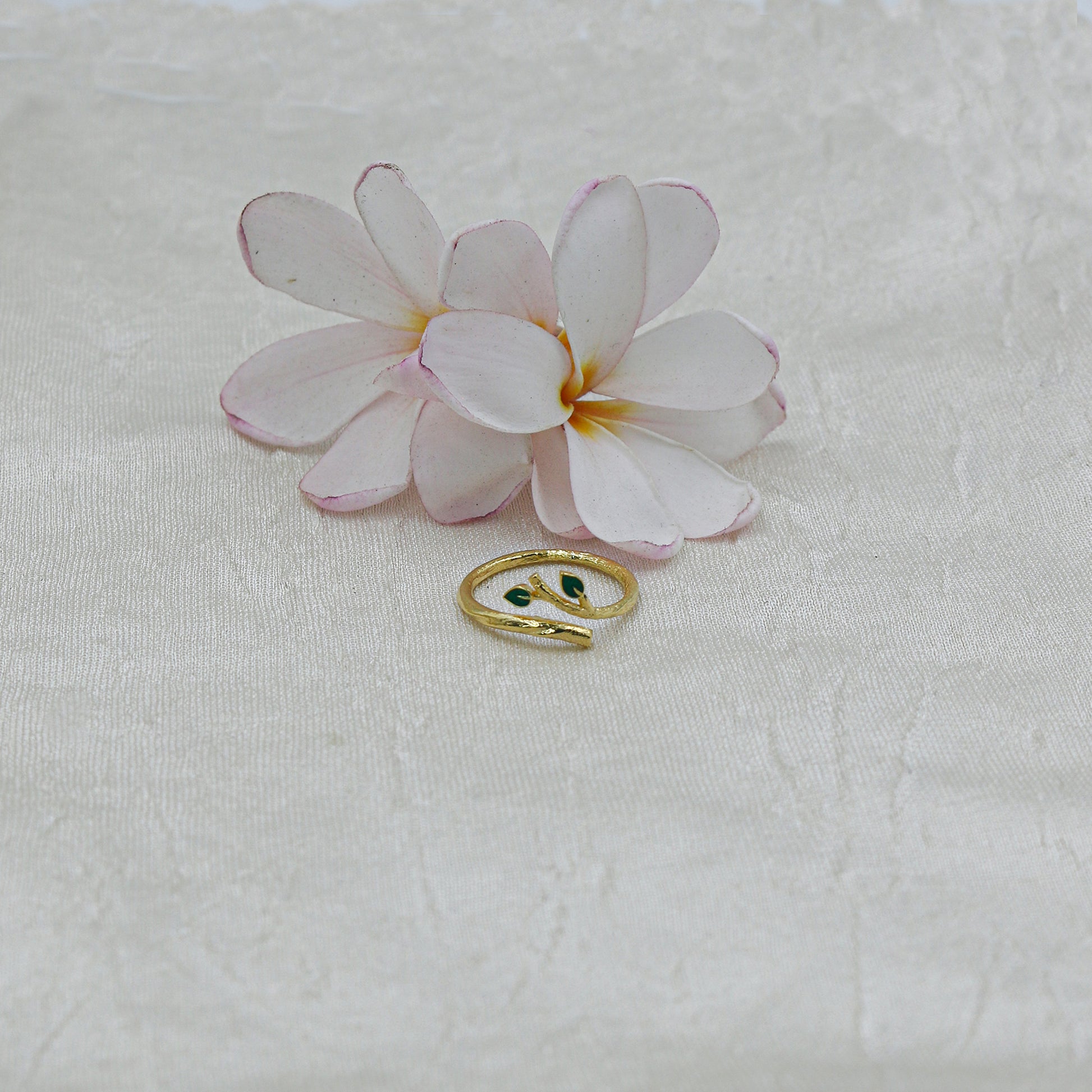 Features small green gemstone accents (inferred)